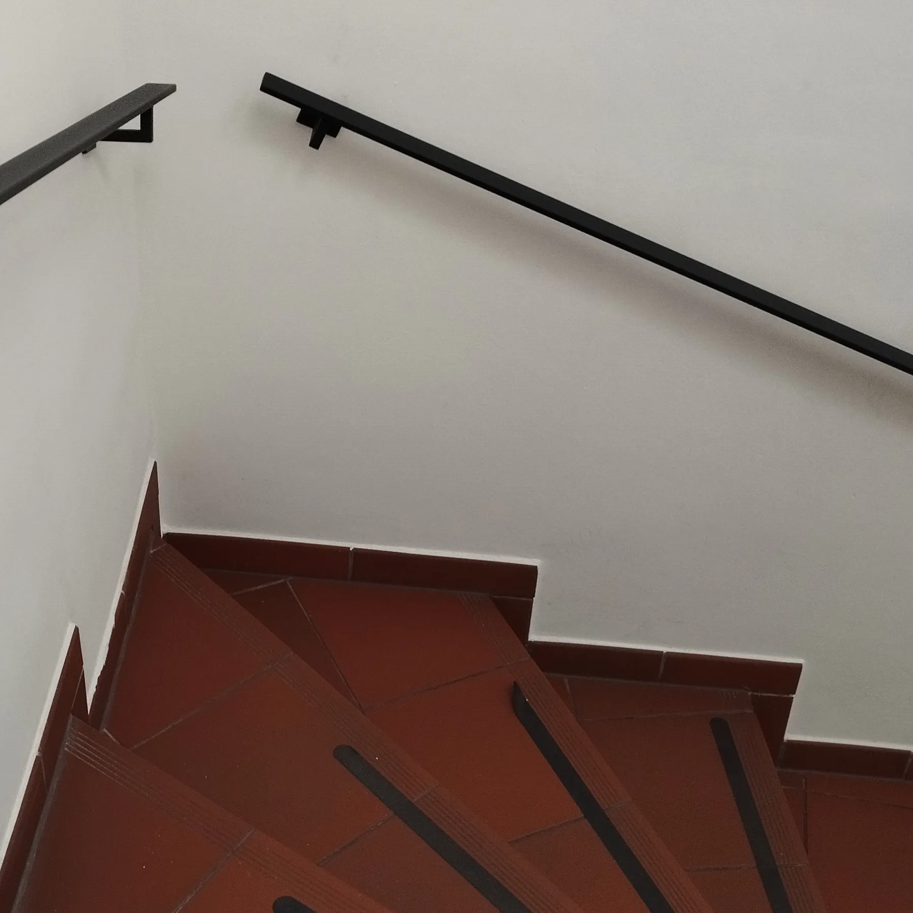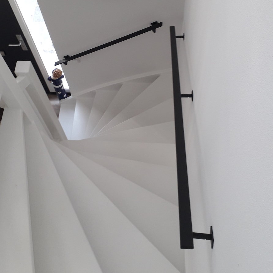 Antraciet trapleuning (gecoat) op maat - rechthoekig (40x10 mm) - incl. leuninghouders TYPE 11 - coating donkergrijs RAL 7016 of 7021