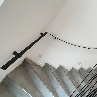 Een stijlvolle antraciet trapleuning met strakke type 13 leuningdragers. Deze rechthoekige leuning past mooi in een moderne & trendy interieurstijl en wordt - in een lengte op maat - compleet incl. dragers + bevestigingsmaterialen geleverd. Lees meer