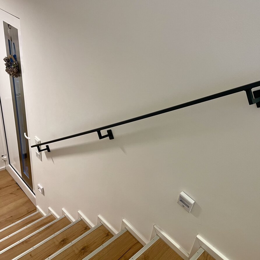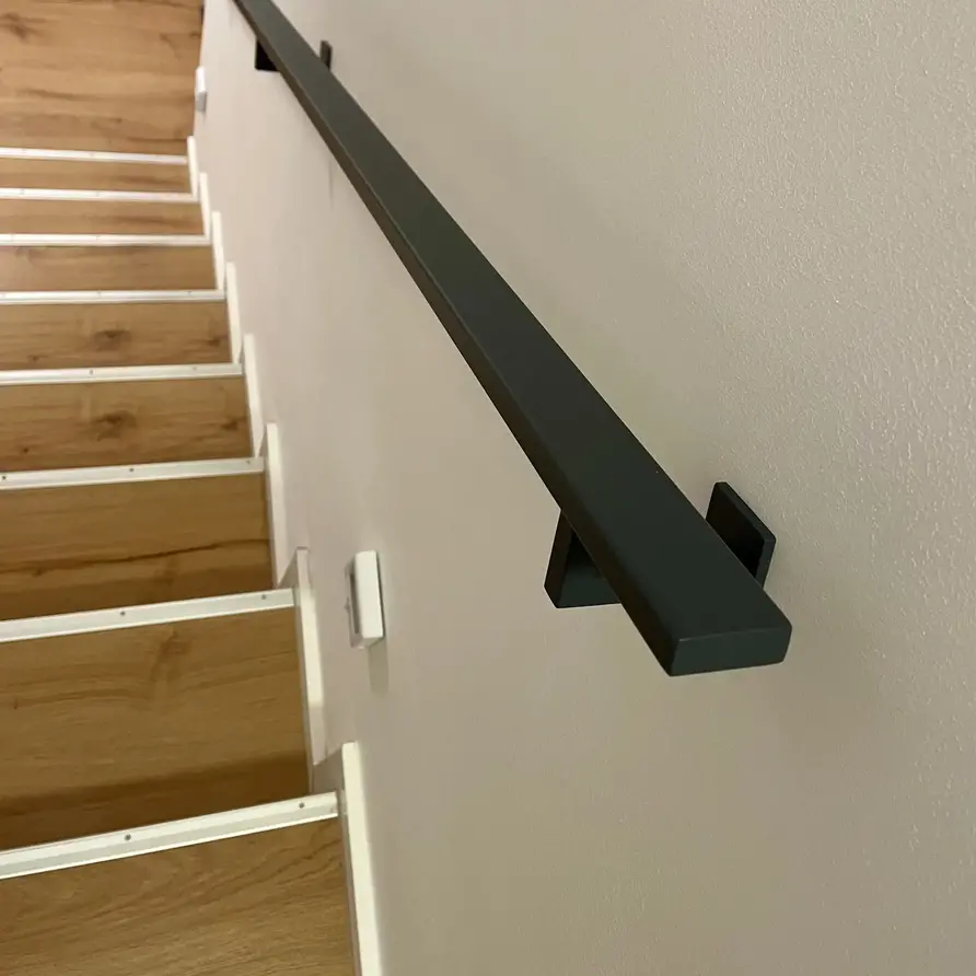 Een stijlvolle antraciet trapleuning met stijlvolle type 11 leuningdragers. Deze rechthoekige leuning past mooi in een moderne interieurstijl en wordt - in een lengte op maat - compleet incl. dragers + bevestigingsmaterialen geleverd. Lees meer