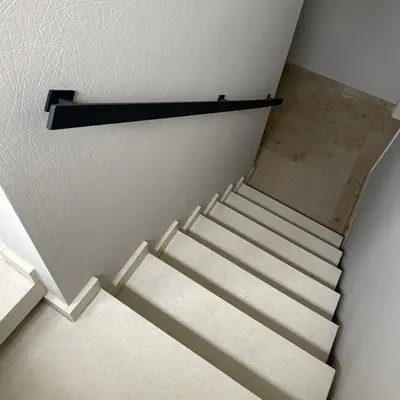 Antraciet trapleuning (gecoat) op maat - rechthoekig (40x10 mm) - incl. leuninghouders TYPE 16 - coating donkergrijs RAL 7016 of 7021