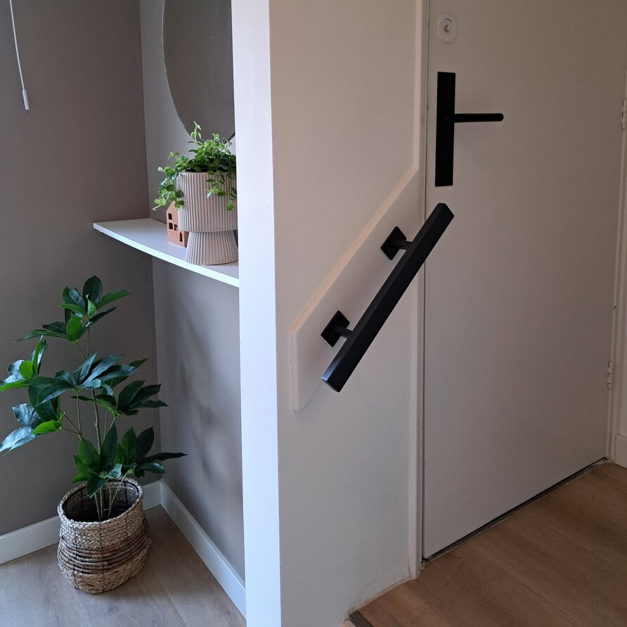 Een antraciet zwarte trapleuning met strakke type 16 leuningdragers. Deze rechthoekige leuning past in vrijwel iedere moderne interieurstijl en wordt - in een lengte op maat - compleet incl. dragers + bevestigingsmaterialen geleverd. Lees meer