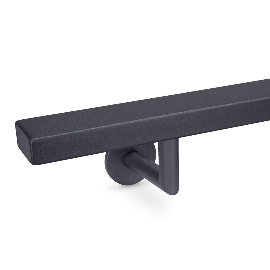 Antraciet trapleuning (gecoat) op maat - rechthoekig (40x20 mm) - incl. leuningdragers TYPE 3 LUXE - coating donkergrijs RAL 7016 of 7021