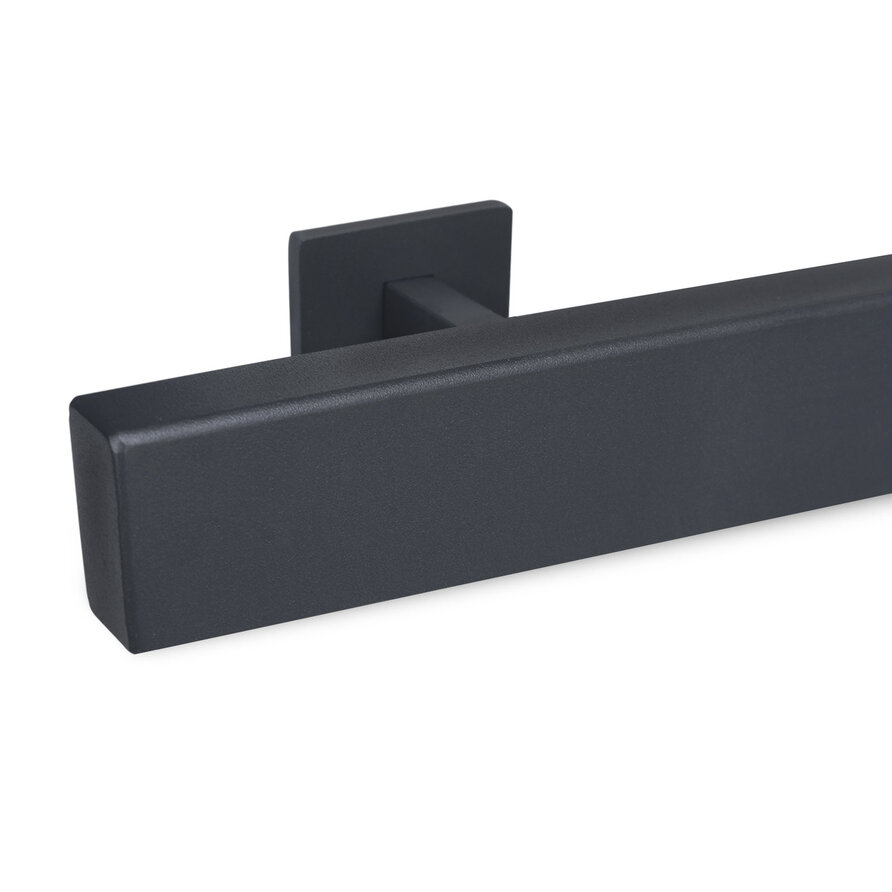 Antraciet trapleuning (gecoat) op maat - rechthoekig (50x20 mm) + leuninghouders TYPE 16 - coating donkergrijs RAL 7016 of 7021