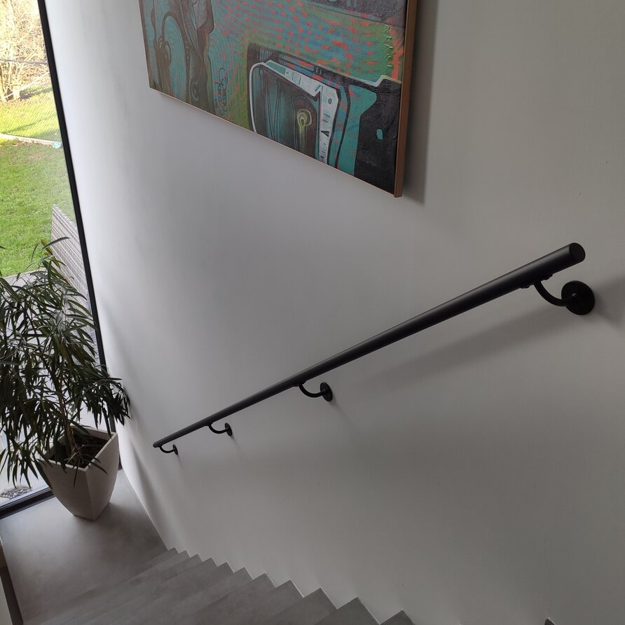 Antraciet trapleuning (gecoat) op maat - rond smal - incl. leuninghouders TYPE 2 - coating donkergrijs RAL 7016 of 7021