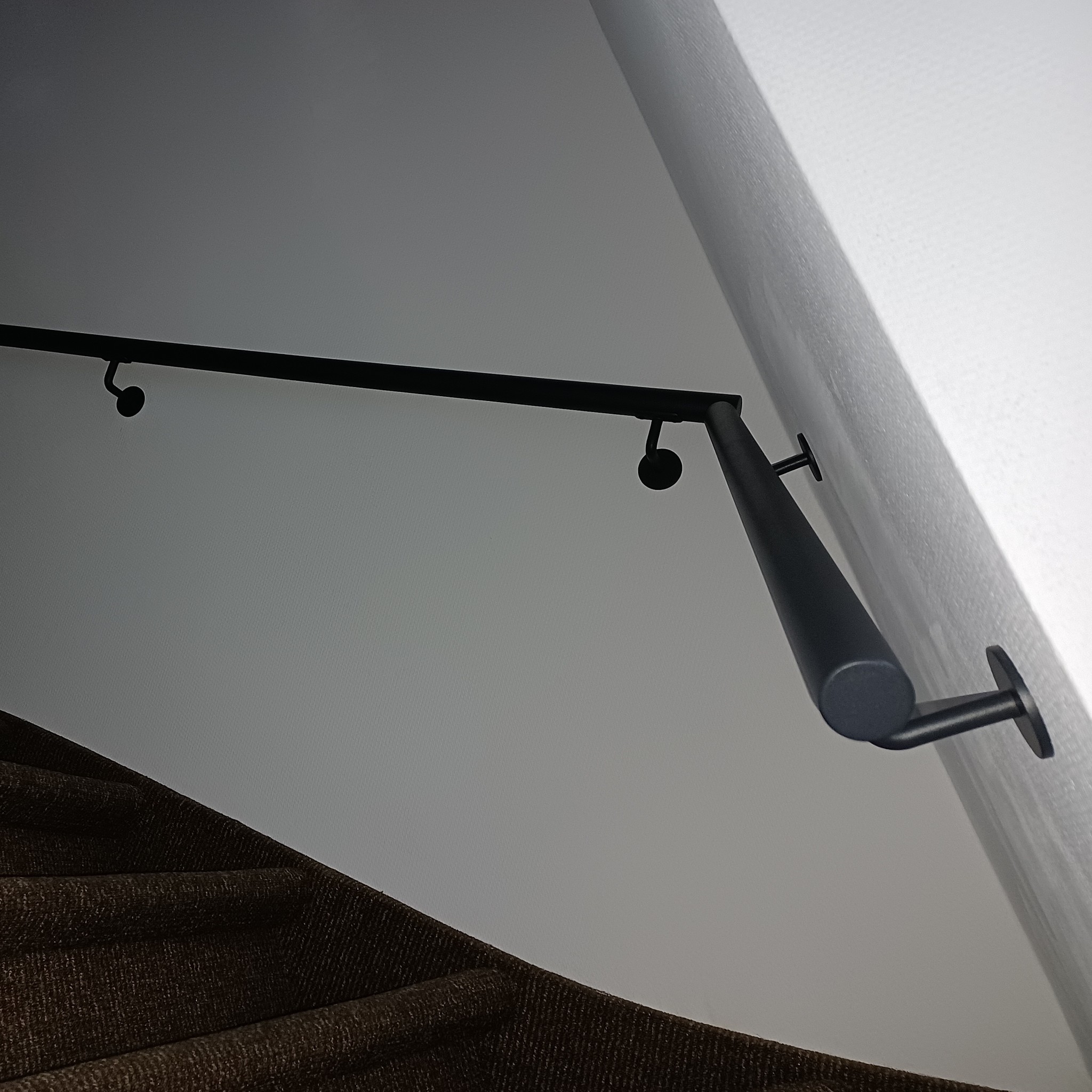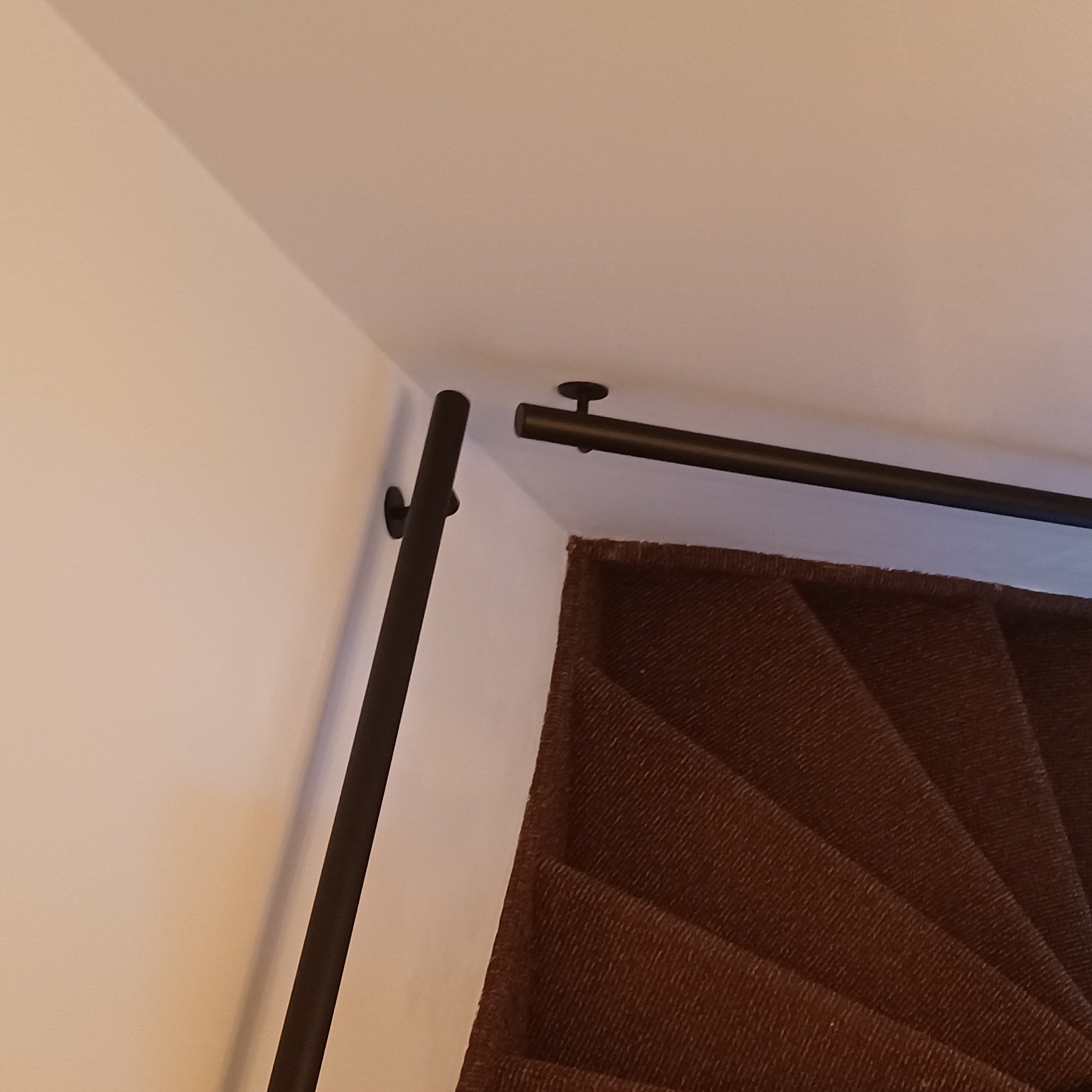 Een toegankelijke antraciet trapleuning. Deze ronde leuning past in vrijwel iedere interieurstijl en wordt in een lengte op maat geleverd. Lees meer