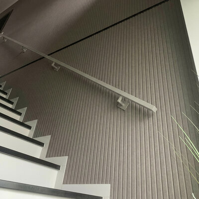 Een trendy grijze trapleuning met stijlvolle type 11 leuningdragers. Deze rechthoekige leuning past in vrijwel iedere moderne interieurstijl en wordt - in een lengte op maat - compleet incl. dragers + bevestigingsmaterialen geleverd. Lees meer