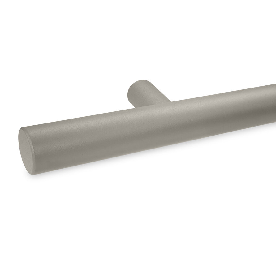 Grijze trapleuning (gecoat) op maat - rond smal - incl. leuninghouders TYPE 14 - coating grijs RAL 7030, 7044, 1019 of 9002
