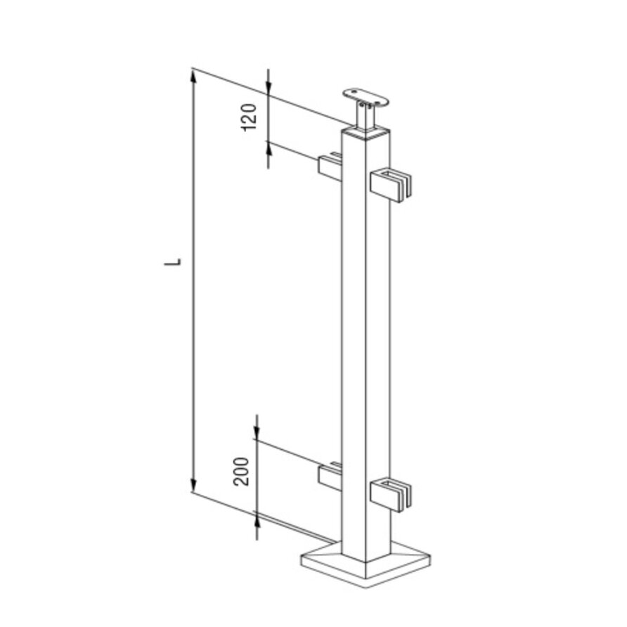 Inox baluster t.b.v. glasklemmen - tussenstuk - recht (40x40 mm)