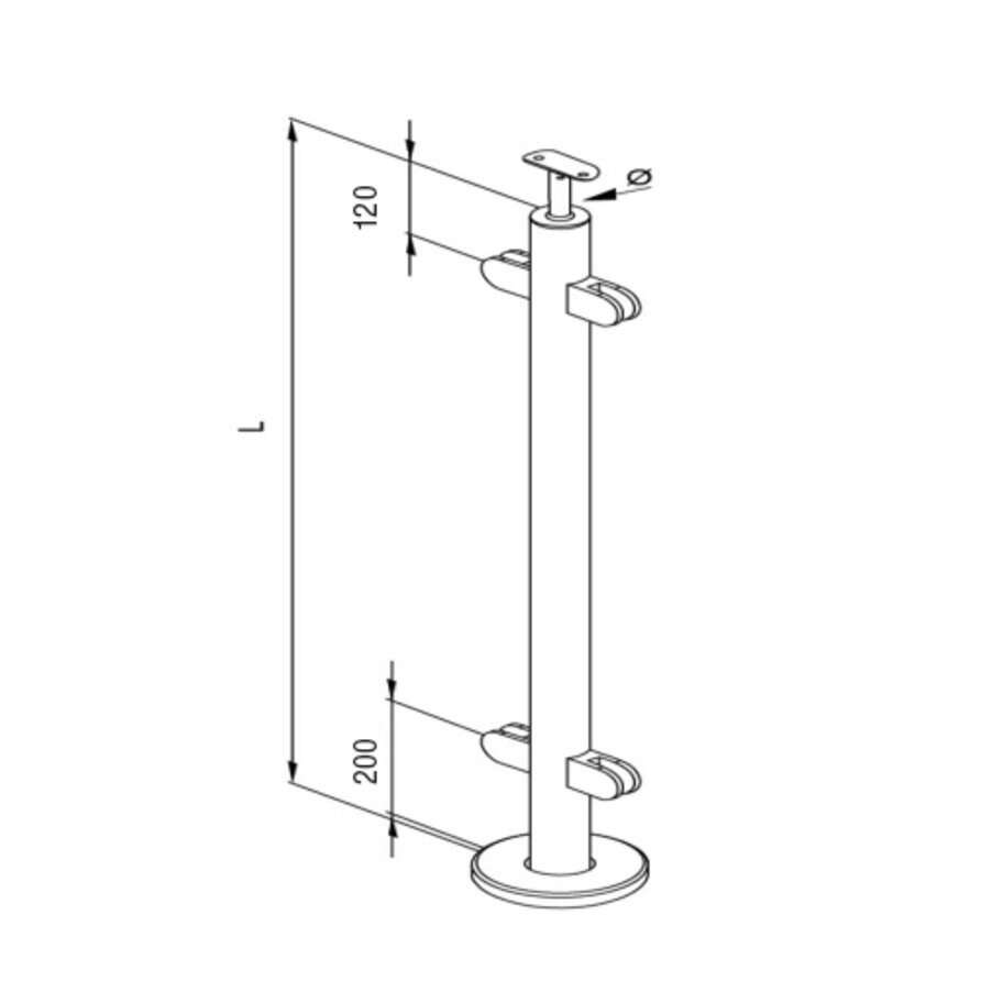 Inox baluster t.b.v. glasklemmen - tussenstuk - rond (42,4 mm)