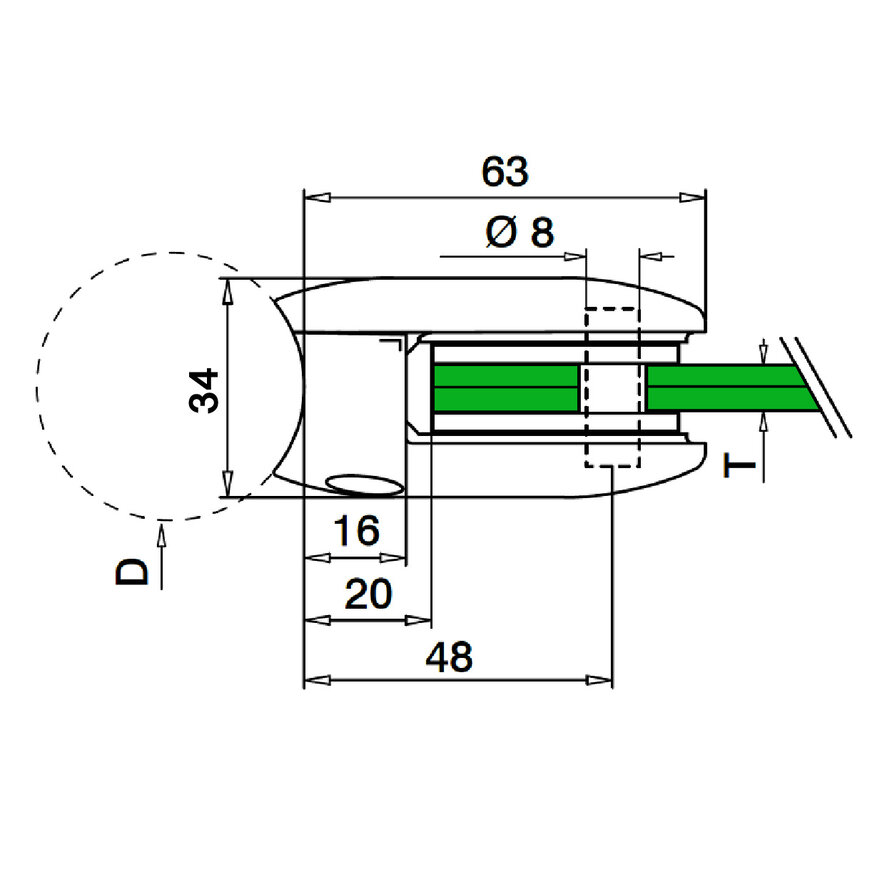 42,4 mm | AISI 304 | glasdikte 10,76 mm | per 4 | €10,35