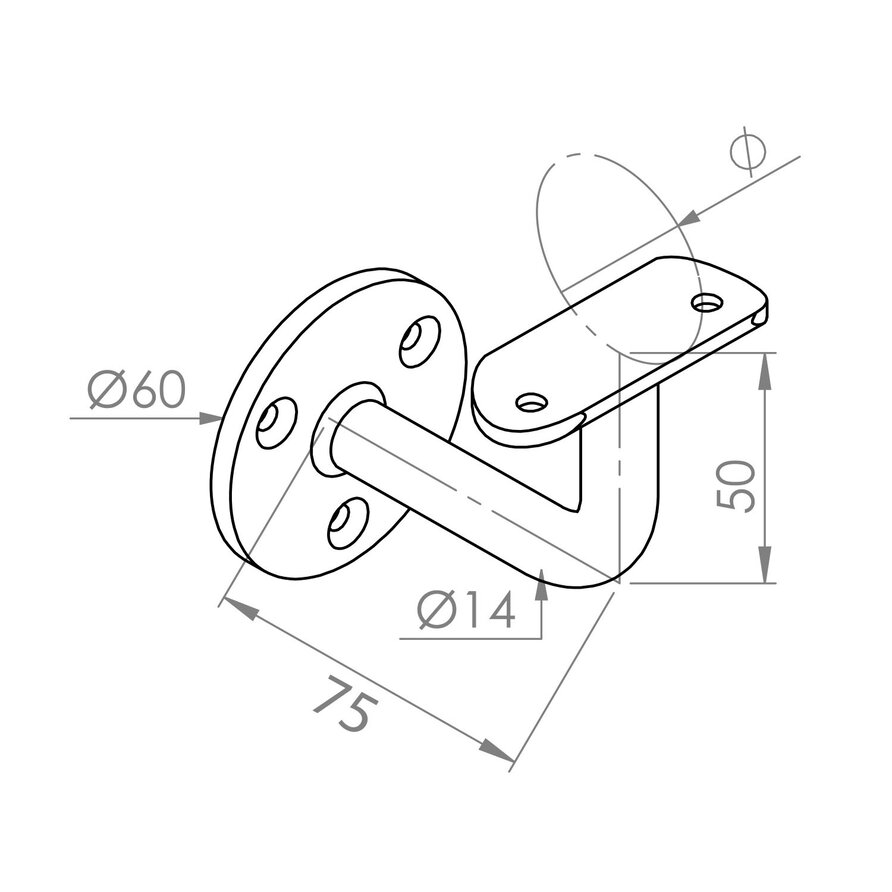 Inox leuningdrager - Type 1 - rond (33,7 mm)