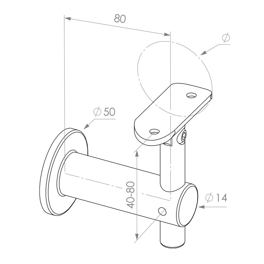 Inox leuningdrager - TYPE 6 - rond - geschikt voor ronde trapleuningen (42,4 mm) - geborsteld 304 INOX (voor binnen). De TYPE 6 leuningdrager is een stijlvolle houder met een luxe uitstraling. Het variabele element zorgt hierbij voor een extra bijzonder accent. Dit betreft een scharnier, waarmee de drager altijd 'recht' op de muur gemonteerd worden (verticaal), in welke gradenhoek de leuning ook geplaatst wordt. Daarnaast kan ook de hoogte van de leuningdrager aangepast worden. De "blinde montage" van deze drager (middels een stokbout) - waarbij er geen bevestigingsschroeven zichtbaar zijn - zorgt voor een extra strakke look. Deze ronde leuninghouder is geschikt voor een ronde trapleuning met een diameter van 42,4 mm. De drager / houder is vervaardigd uit 304 INOX (voor binnen) en heeft een subtiele geborstelde afwerking.