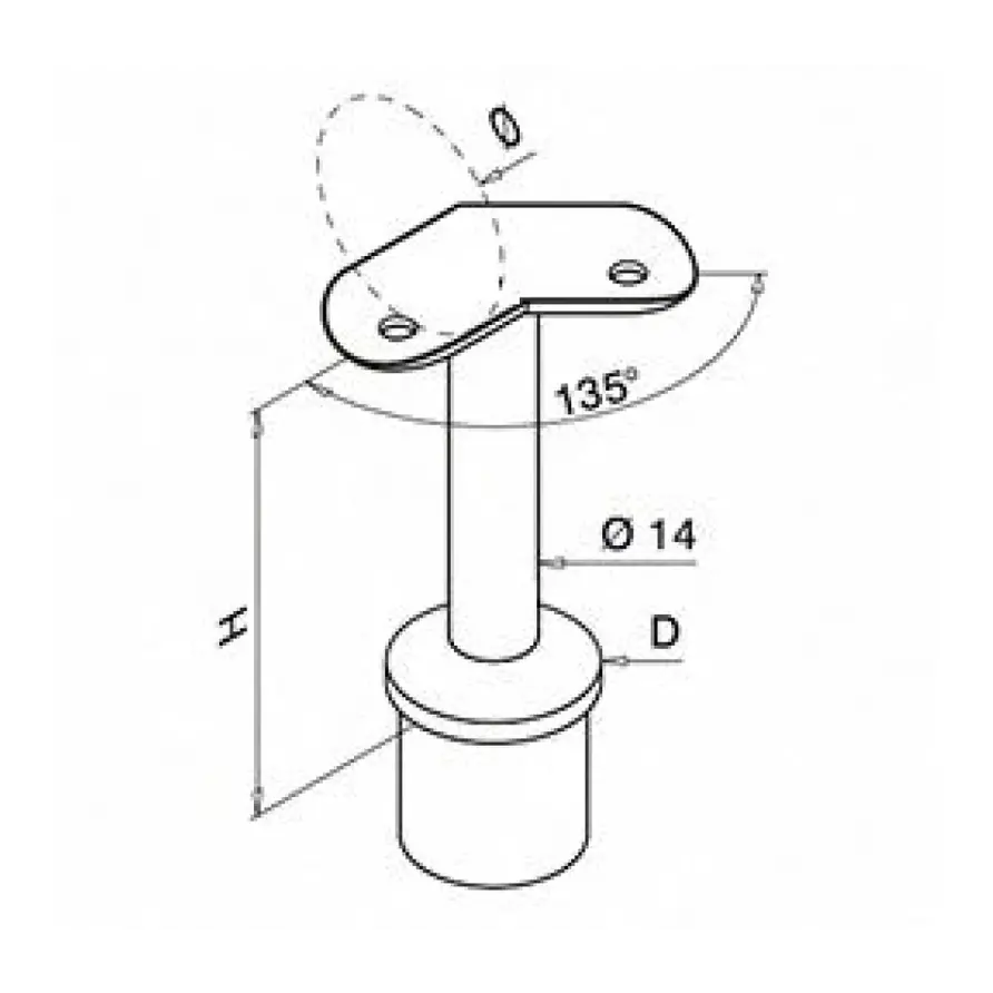 Inox railingsteun - 135 graden - rond (48,3 mm)