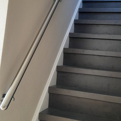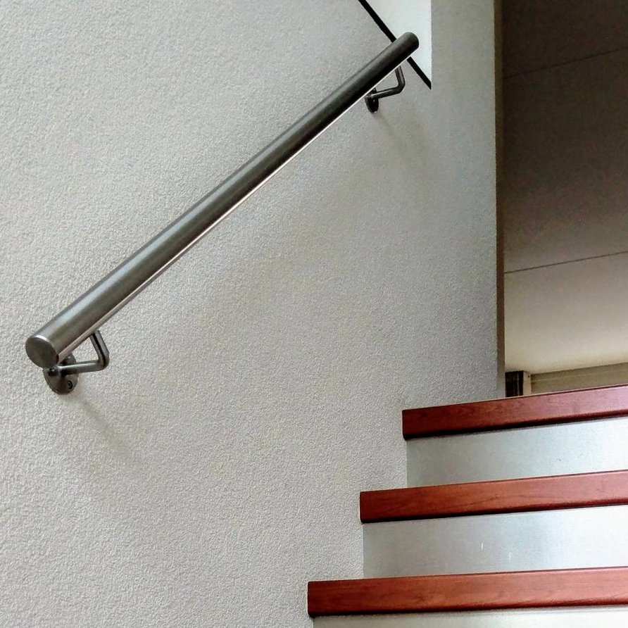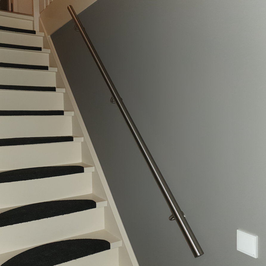 Inox trapleuning - rond - incl. dragers TYPE 1 + bevestigingsmaterialen - OP MAAT - van 30 cm t/m 595 cm lang - geborsteld 304 INOX (voor binnen). Deze ronde INOX trapleuning heeft een diameter van 42,4 mm, betreft 304 INOX (voor binnen) en heeft een subtiele geborstelde afwerking. Deze ronde leuning combineert een klassieke trapleuning vorm met de moderne uitstraling van INOX. Een toegankelijke leuning van RVS die in de meeste interieurstijlen naadloos toegepast kan worden.