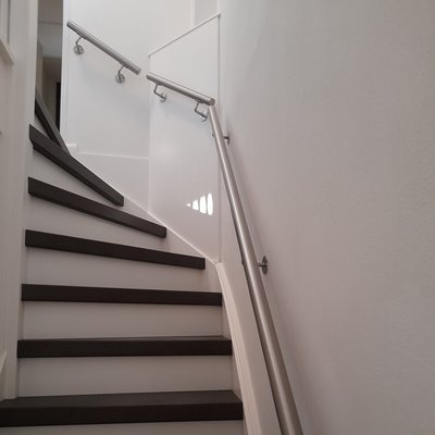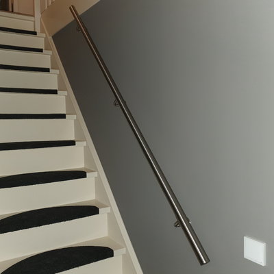 Een toegankelijke INOX trapleuning met klassieke type 1 leuningdragers. Deze ronde leuning past in vrijwel iedere interieurstijl en wordt - in een lengte op maat - compleet incl. dragers + bevestigingsmaterialen geleverd. Lees meer
