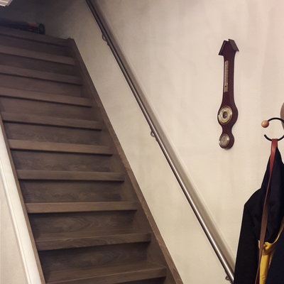 Een toegankelijke INOX trapleuning met traditionele type 2 leuningdragers. Deze ronde leuning past in vrijwel iedere interieurstijl en wordt - in een lengte op maat - compleet incl. dragers + bevestigingsmaterialen geleverd. Lees meer