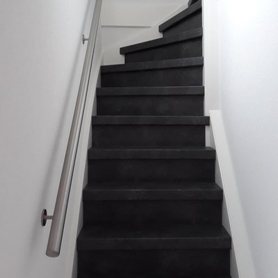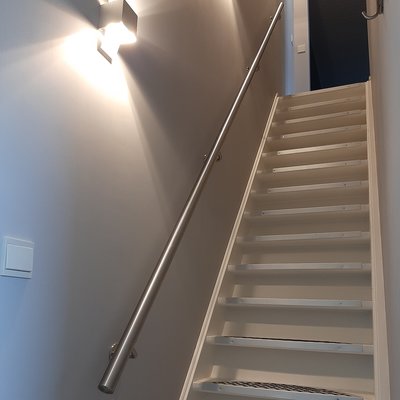Een volledig gelaste INOX trapleuning met moderne type 3 leuningdragers. Deze ronde leuning past in vrijwel iedere interieurstijl en wordt - in een lengte op maat - compleet incl. bevestigingsmaterialen geleverd. Lees meer