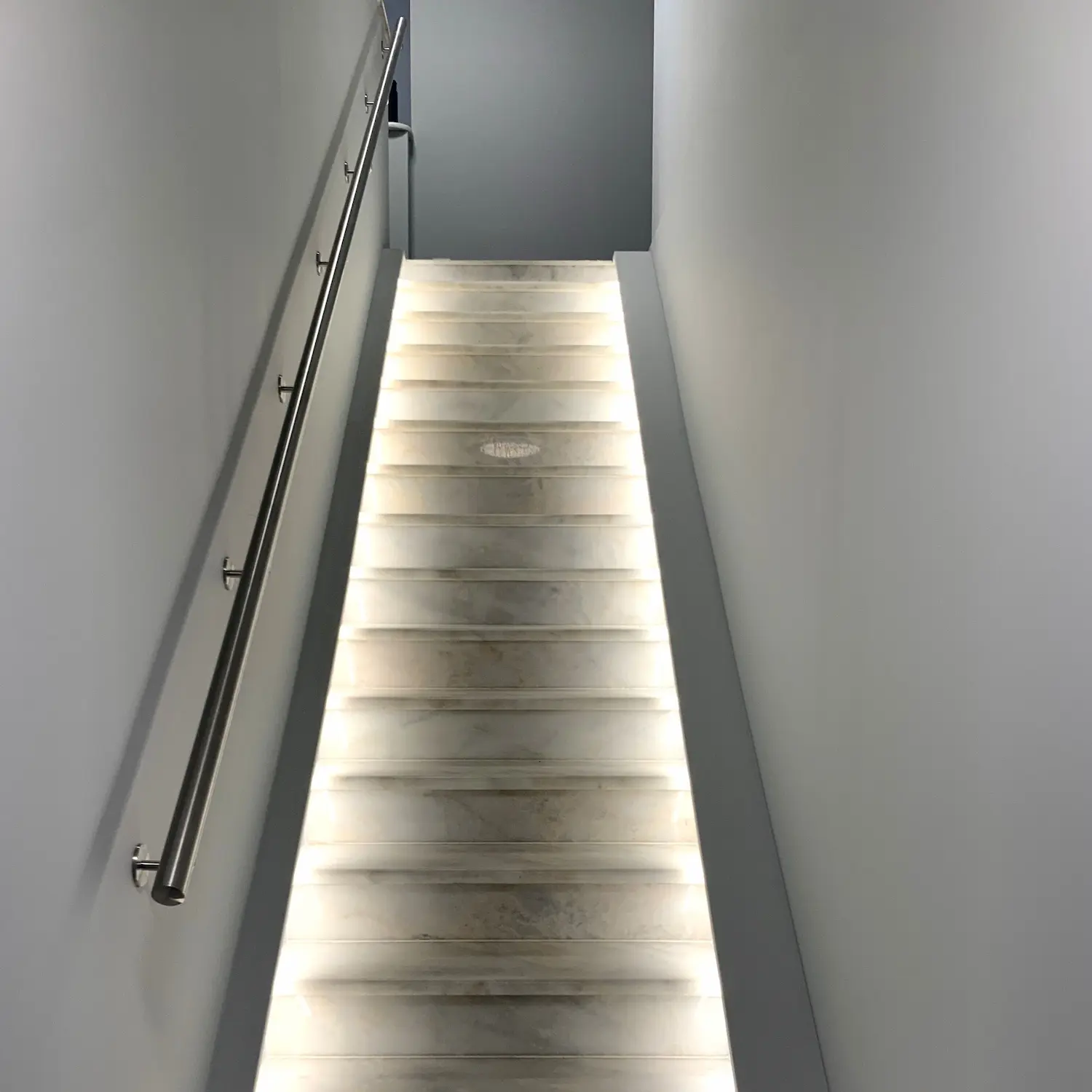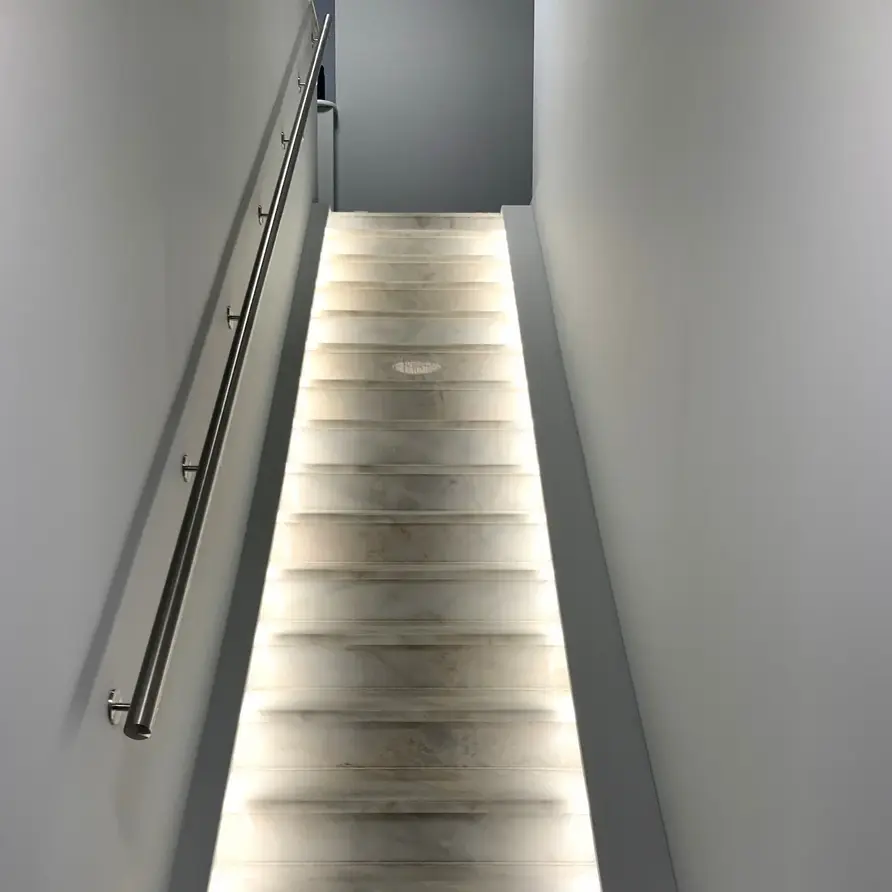 Een toegankelijke INOX trapleuning met moderne type 3 leuningdragers. Deze ronde leuning past in vrijwel iedere interieurstijl en wordt - in een lengte op maat - compleet incl. dragers + bevestigingsmaterialen geleverd. Lees meer