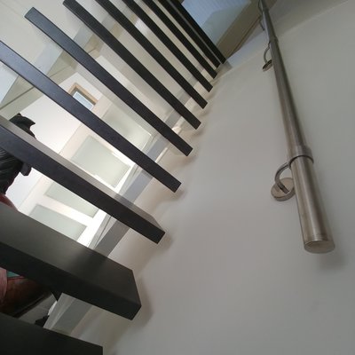 De TYPE 9 leuningdrager is een unieke schuifbare houder die een klassieke vormgeving combineert met een moderne uitstraling. De "blinde montage" van deze drager (middels drie schroeven + kapje) - waarbij er geen bevestigingsschroeven zichtbaar zijn - zorgt voor een strakke look. Deze drager kan over de leuning geschoven worden, waardoor voorboren (van de leuning) niet nodig is, erg handig in het geval u bestaande montagepunten in uw muur wilt "hergebruiken". Deze trapleuning wordt in eigen werkplaats - tot op de mm nauwkeurig - voor u op maat vervaardigd. Uw leuning wordt in de gewenste lengte gezaagd en zorgvuldig afgewerkt door ervaren vakmannen, met zorg & liefde voor het vak. U ontvangt deze leuning incl. dragers TYPE 9 plus alle bijbehorende bevestigingsmaterialen.