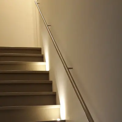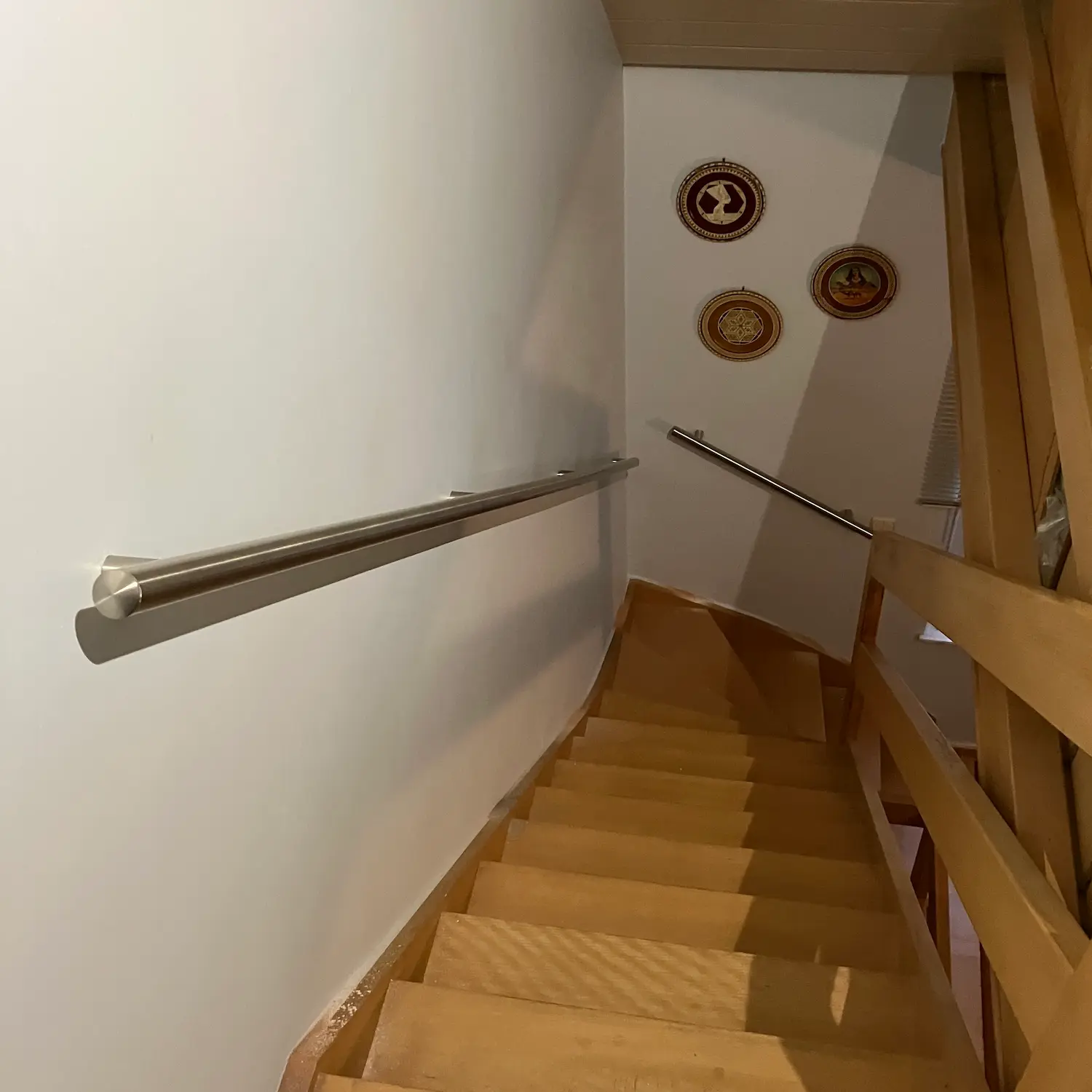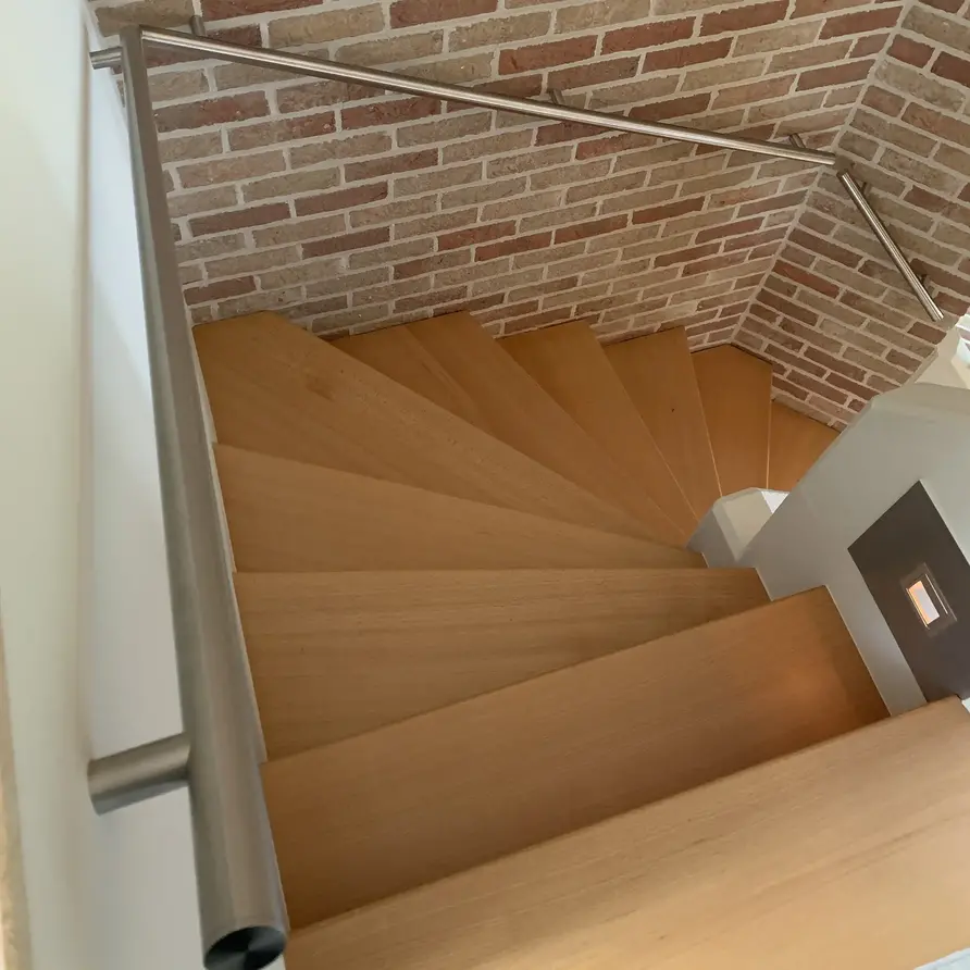 Een toegankelijke INOX trapleuning met minimalistische type 14 leuningdragers. Deze ronde leuning past in vrijwel iedere interieurstijl en wordt - in een lengte op maat - compleet incl. dragers + bevestigingsmaterialen geleverd. Lees meer