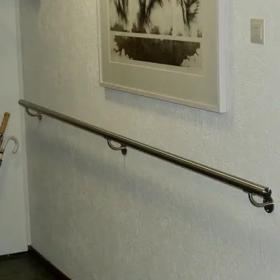 Een toegankelijke INOX trapleuning met traditionele type 2 leuningdragers. Deze ronde leuning past in vrijwel iedere interieurstijl en wordt - in een lengte op maat - compleet incl. dragers + bevestigingsmaterialen geleverd. Lees meer
