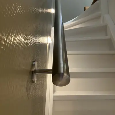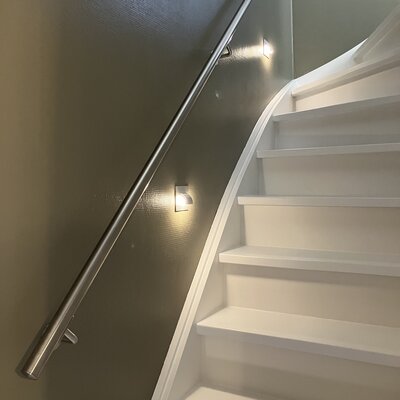 Een toegankelijke INOX trapleuning met moderne type 3 leuningdragers. Deze ronde leuning past in vrijwel iedere interieurstijl en wordt - in een lengte op maat - compleet incl. dragers + bevestigingsmaterialen geleverd. Lees meer
