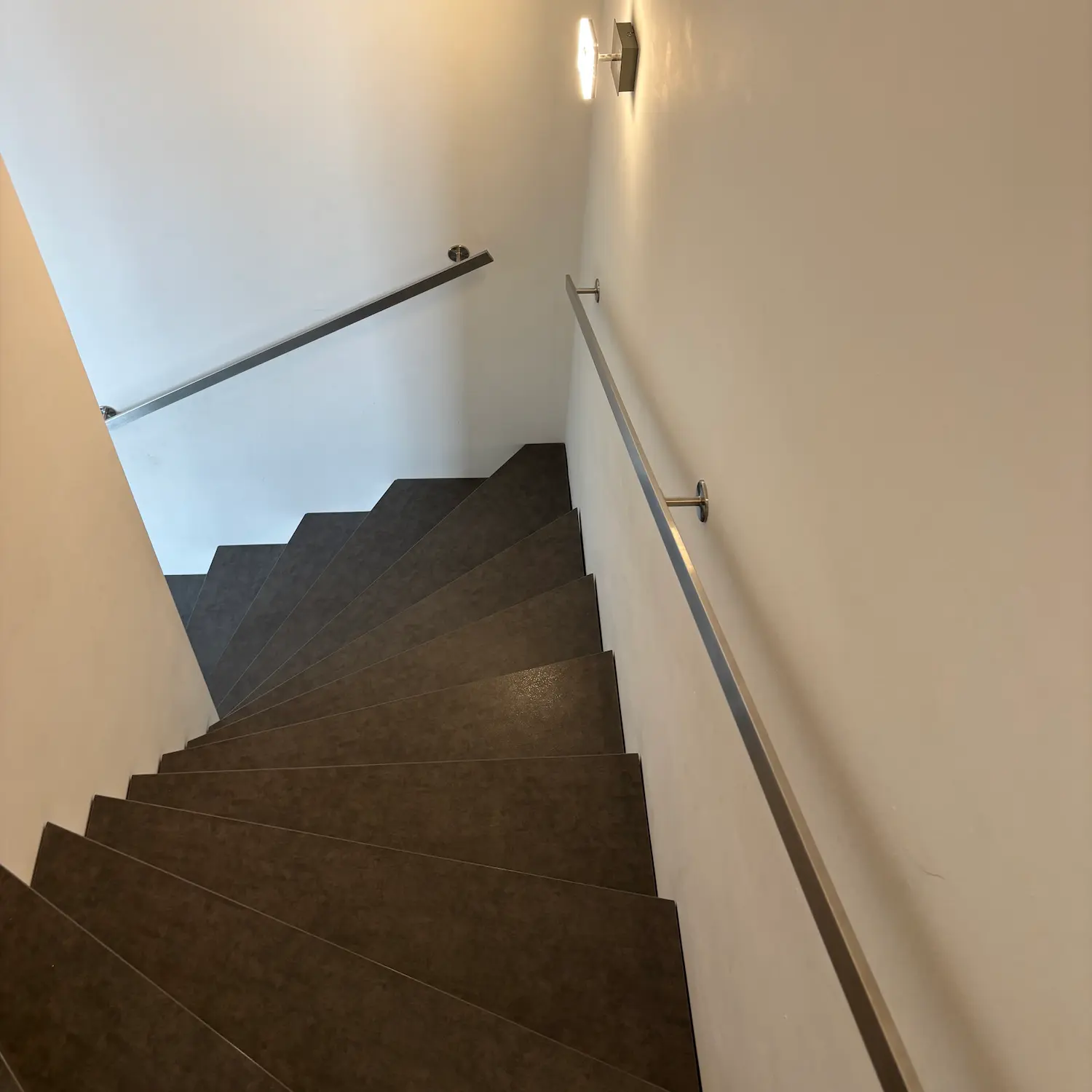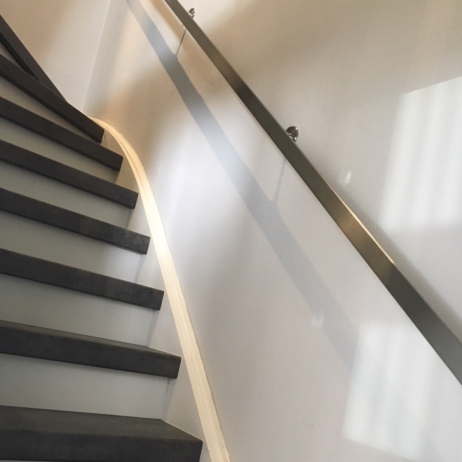 Een stijlvolle INOX trapleuning met mooie type 4 leuningdragers. Deze rechthoekige leuning past mooi in een moderne & trendy interieurstijl en wordt - in een lengte op maat - compleet incl. dragers + bevestigingsmaterialen geleverd. Lees meer