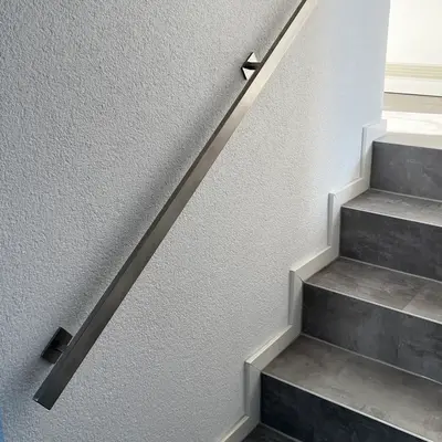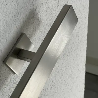 Inox trapleuning - rechthoekig (40x15 mm) - incl. dragers TYPE 16 + bevestigingsmaterialen - OP MAAT - van 30 cm t/m 595 cm lang - geborsteld 304 INOX (voor binnen). Deze rechthoekige INOX trapleuning heeft een "dikte" van 40x15 mm, betreft 304 INOX (voor binnen) en heeft een subtiele geborstelde afwerking. De 40x15 mm INOX trapleuning oogt - naast strak - ook elegant & modern. Een stijlvolle RVS leuning, ideaal geschikt voor een moderne en trendy interieurstijl. De uiteinden van deze trapleuningen worden altijd naadloos dichtgelast en vervolgens mooi afgeslepen, voor een strakke en mooi afgewerkte trapleuning. Deze leuning(drager) is geschikt voor verticale & horizontale plaatsing. Denk hierbij bijv. aan een railing op een muurtje, zoals een stenen (trap)balustrade, of als extra verticale “handgreep” bij uw trap.