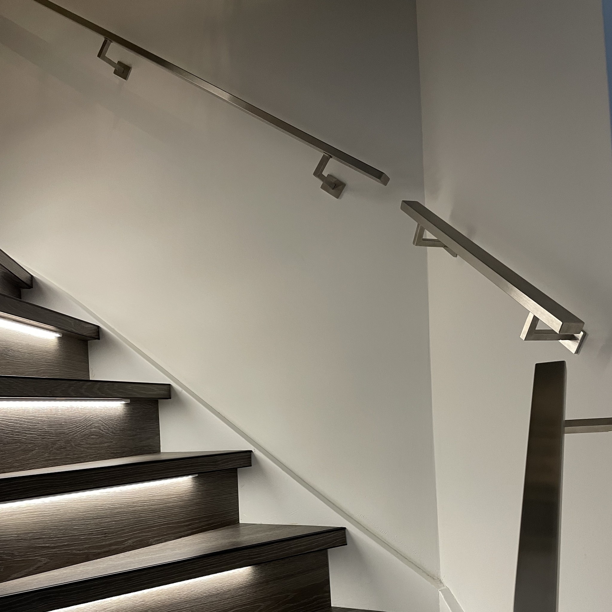 Een toegankelijke INOX trapleuning met stijlvolle type 11 leuningdragers. Deze rechthoekige leuning past in vrijwel iedere moderne interieurstijl en wordt - in een lengte op maat - compleet incl. dragers + bevestigingsmaterialen geleverd. Lees meer
