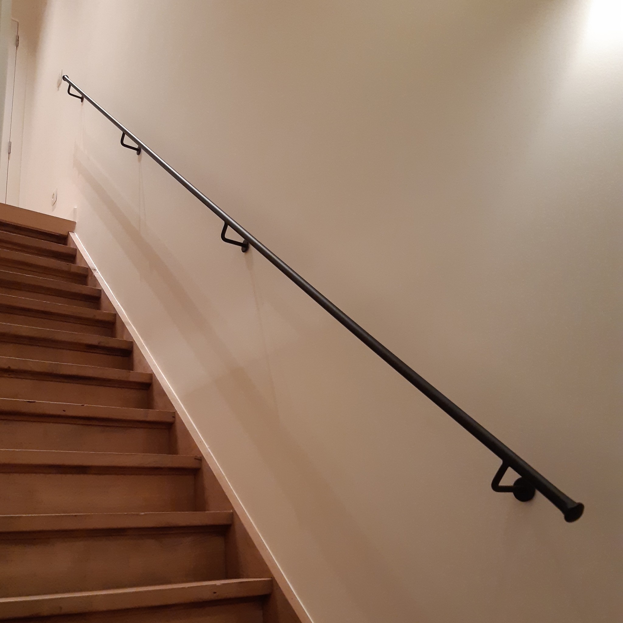 U ontvangt deze smeedijzer leuning incl. subtiele ronde leuninghouders, speciaal geschikt om direct in de muur te bevestigen; Voor een prachtig "strak afgewerkt" eindresultaat. De ronde leuningdrager heeft een diameter van 10 mm en is volledig massief. Per leuningdrager wordt een kleine ronde rozet (diameter 4 cm) meegeleverd. Deze leuningdragers zijn vastgelast aan de leuning en kunnen met behulp van een chemisch anker (blind) in / aan de muur bevestigd worden. De smeedijzeren leuning wordt inclusief kwalitatief chemisch anker geleverd. Al onze smeedijzeren trapleuningen worden - tot op de mm nauwkeurig - voor u op maat vervaardigd. Uw trapleuning wordt in de gewenste lengte gezaagd, de dragers worden vastgelast & het geheel wordt vervolgens zorgvuldig afgewerkt door ervaren vakmannen, met zorg & liefde voor het vak.