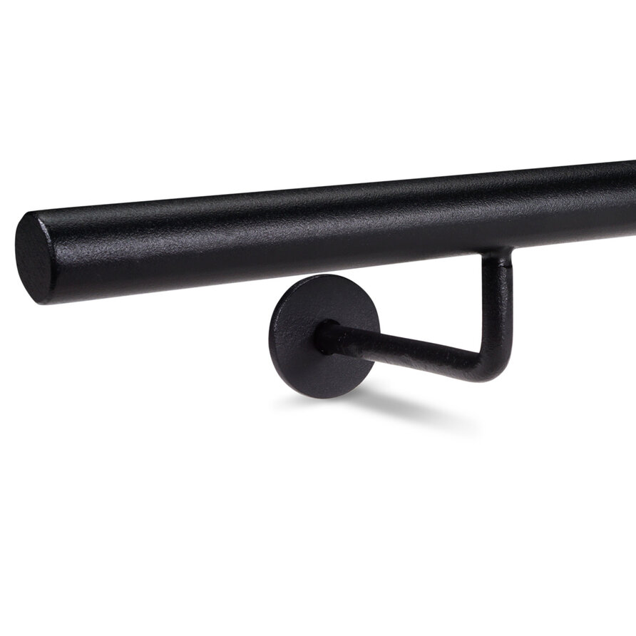 Smeedijzeren trapleuning op maat - ZWART - rond massief (20 mm) - incl. ronde leuninghouders (gelast) met rozet - coating zwart RAL 9005