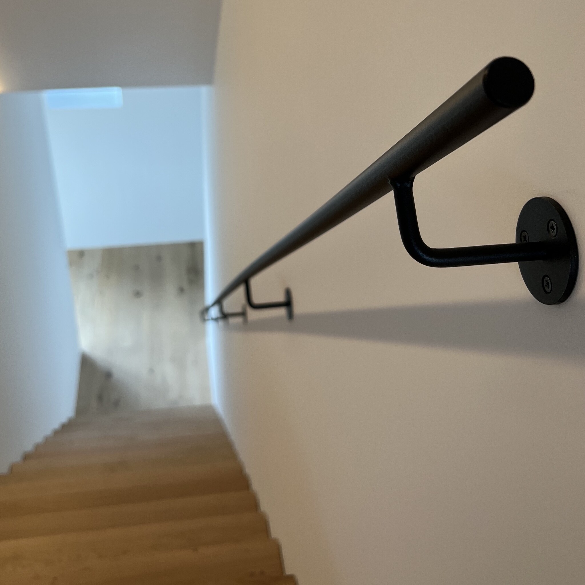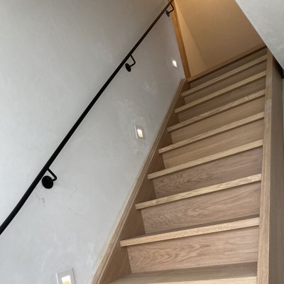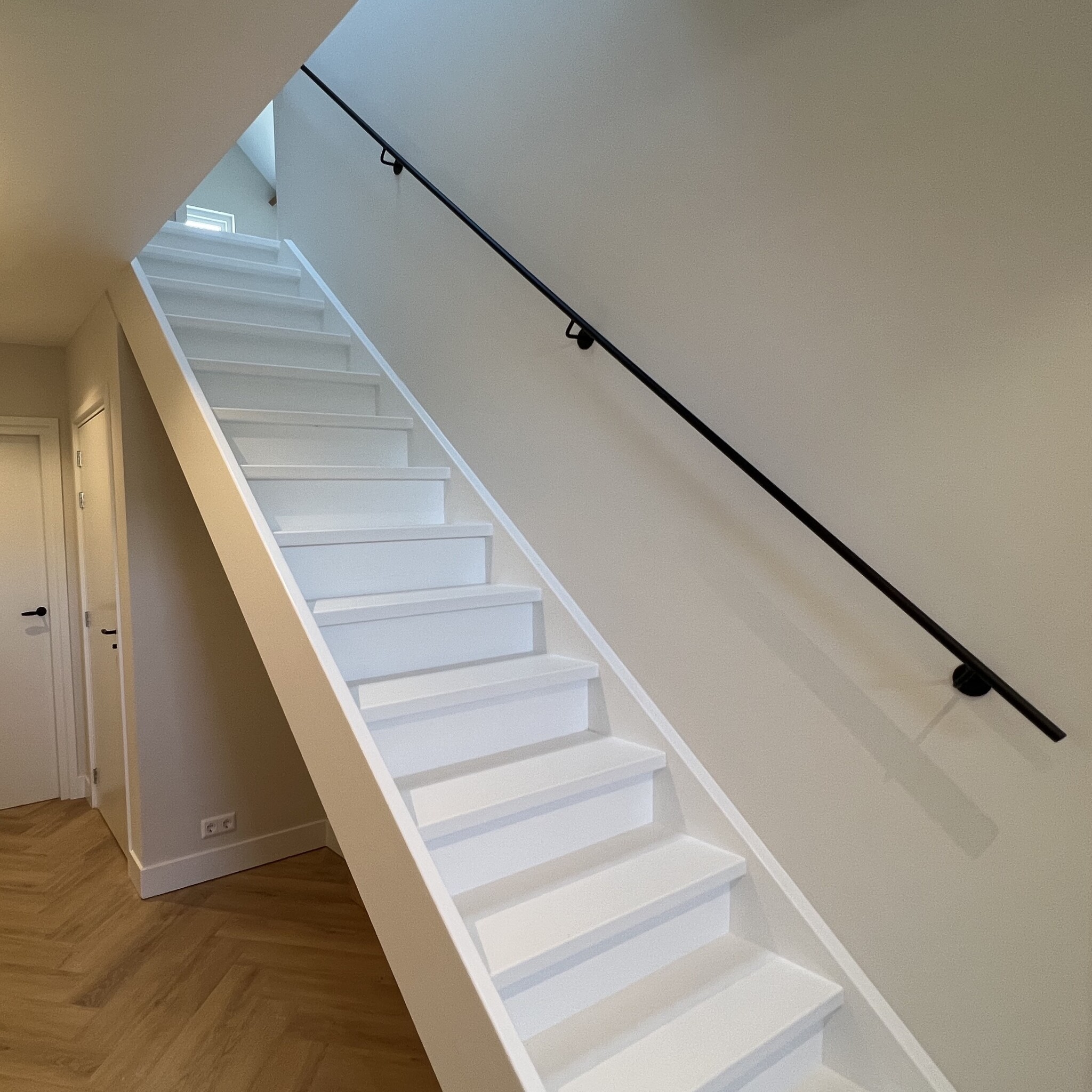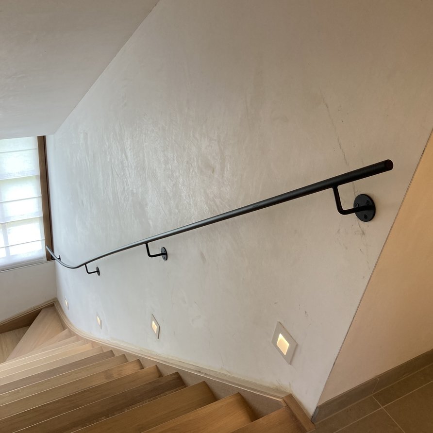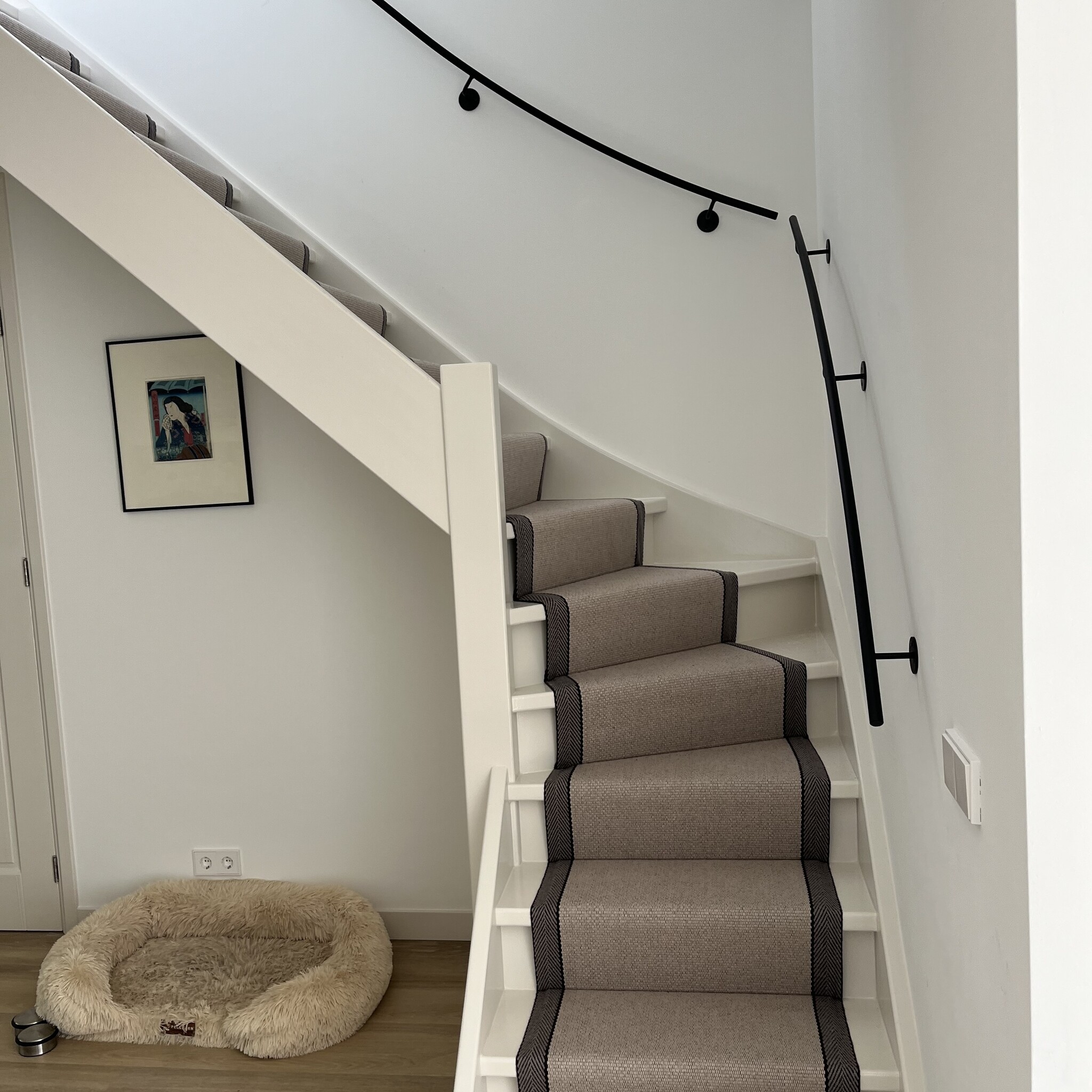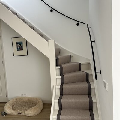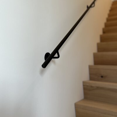 Een prachtige slanke smeedijzeren trapleuning - matzwart gecoat - met TYPE 1 leuningdragers. Niet alleen een mooie trapleuning, maar vooral ook een bijzonder interieurobject: Stijlvol & authentiek, met een modern tintje. Lees meer