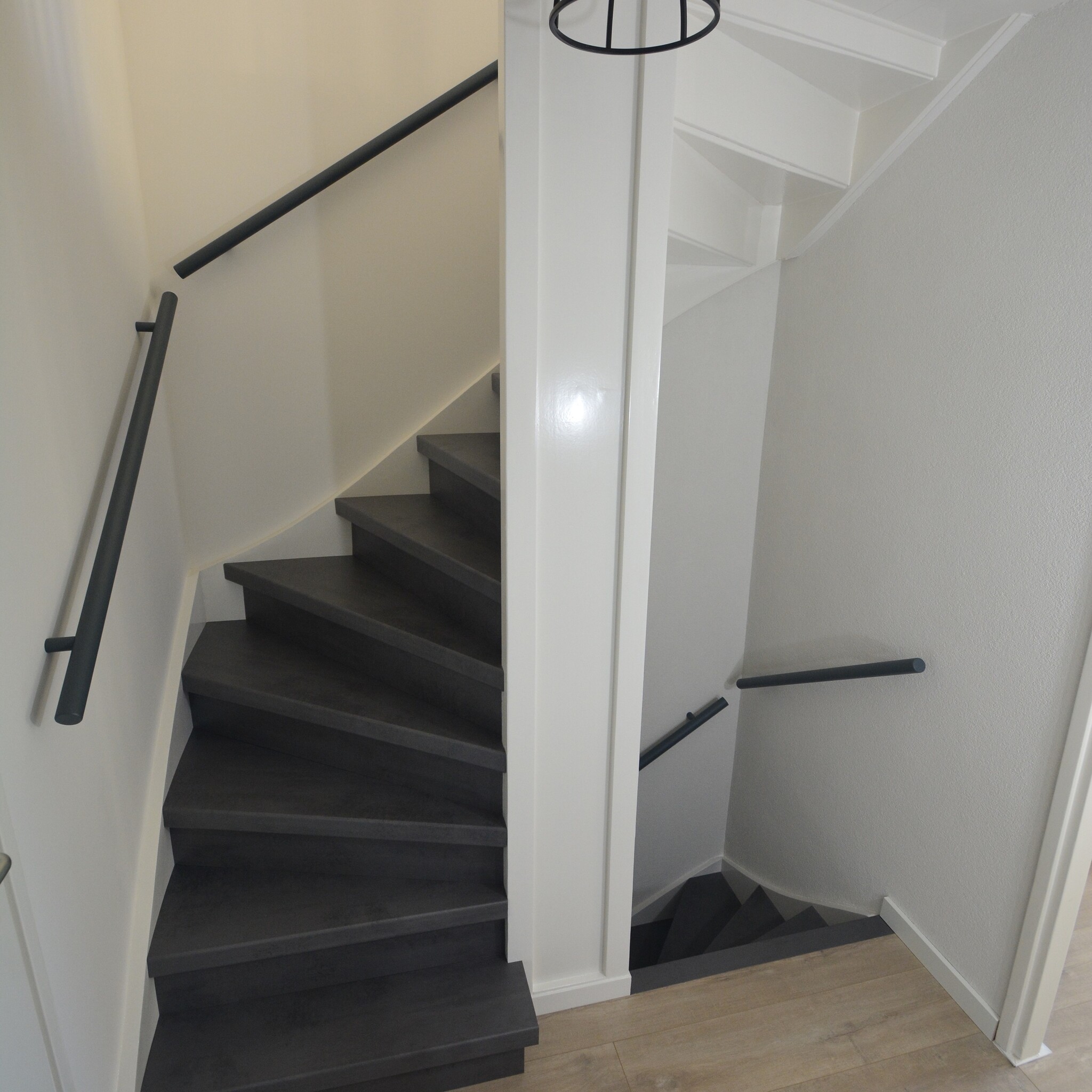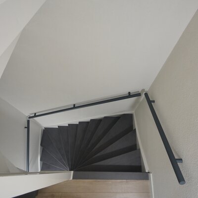 Trapleuning in RAL kleur naar wens - rond - incl. dragers TYPE 14 + bevestigingsmaterialen - OP MAAT - van 30 cm t/m 595 cm lang - fijnstructuur poedercoating in iedere RAL kleur (voor binnen). De ronde trapleuning van staal heeft een diameter van 42,4 mm en wordt voorzien van een hoogwaardige fijnstructuur poedercoating in de door u gewenste RAL kleur. Een klassieke trapleuning vormgeving, verkrijgbaar in iedere RAL kleur: Toegankelijk, modern & altijd uniek! Deze leuning(drager) is geschikt voor verticale & horizontale plaatsing. Denk hierbij bijv. aan een railing op een muurtje, zoals een stenen (trap)balustrade, of als extra verticale “handgreep” bij uw trap. LET OP: De uiteinden van onze trapleuningen in een RAL-kleur naar keuze worden altijd naadloos dichtgelast en vervolgens mooi afgeslepen, voor een strakke en mooi afgewerkte trapleuning.