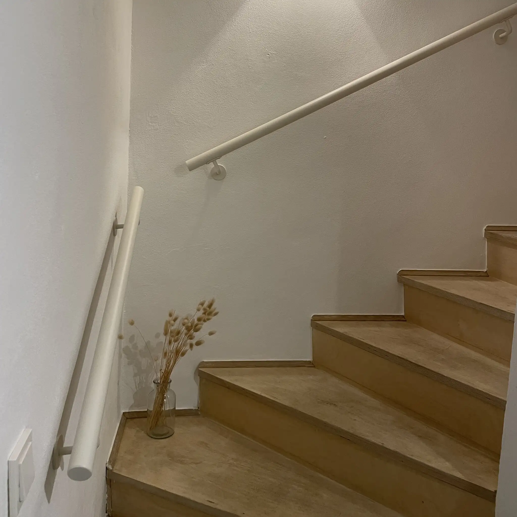 Trapleuning in RAL kleur naar wens - rond - incl. dragers TYPE 3 + bevestigingsmaterialen - OP MAAT - van 30 cm t/m 595 cm lang - fijnstructuur poedercoating in iedere RAL kleur (voor binnen). De ronde trapleuning van staal heeft een diameter van 42,4 mm en wordt voorzien van een hoogwaardige fijnstructuur poedercoating in de door u gewenste RAL kleur. Een klassieke trapleuning vormgeving, verkrijgbaar in iedere RAL kleur: Toegankelijk, modern & altijd uniek! De uiteinden van onze trapleuningen in een RAL-kleur naar keuze worden altijd naadloos dichtgelast en vervolgens mooi afgeslepen, voor een strakke en mooi afgewerkte leuning voor uw trap.