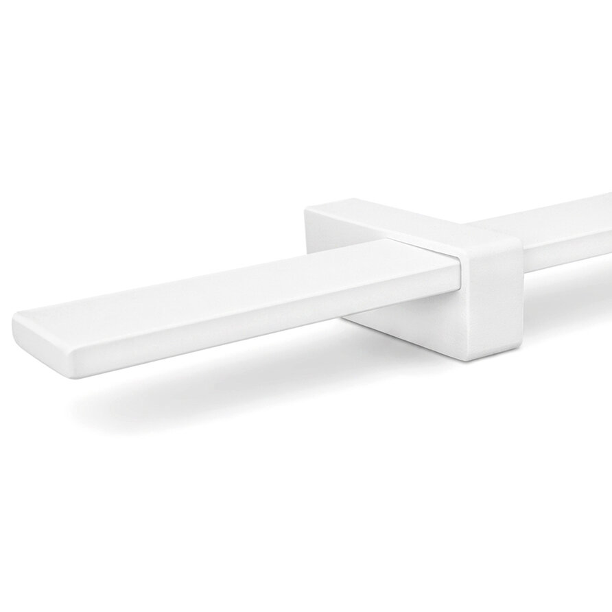 Witte trapleuning - speciaal geschikt voor buitengebruik - rechthoekig (40x10 mm) - incl. dragers TYPE 13 + bevestigingsmaterialen - OP MAAT - van 30 cm t/m 595 cm lang - fijnstructuur poedercoating in wit RAL 9016, RAL 9010 of RAL 9001 (voor buiten). Deze rechthoekige witte trapleuning van staal heeft een "dikte" van 40x10 mm en is voorzien van een hoogwaardige fijnstructuur poedercoating. Voor extra bescherming tegen de (weers)invloeden bij buiten plaatsing, is deze trapleuning 2 laags (dubbel) gecoat. Hierbij heeft u de keuze uit een trapleuning wit in de kleur RAL 9016 (fris verkeerswit), 9010 (gebroken wit) of 9001 (crèmewit). De witte 40x10 mm trapleuning oogt - naast strak - vooral ook slank & elegant. Een bijzondere witte leuning met een fris en eigentijds accent, ideaal geschikt voor een moderne en trendy interieurstijl. De uiteinden van deze buitenleuning worden altijd naadloos dichtgelast en vervolgens mooi afgeslepen, voor een strakke en mooi afgewerkte trapleuning die optimaal beschermd is voor buiten.