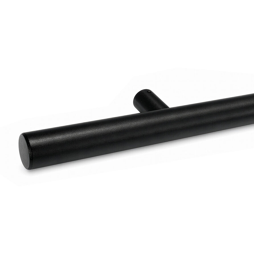 Zwarte trapleuning (gecoat) op maat - voor buiten - rond smal - incl. leuninghouders TYPE 14 - coating zwart RAL 9005