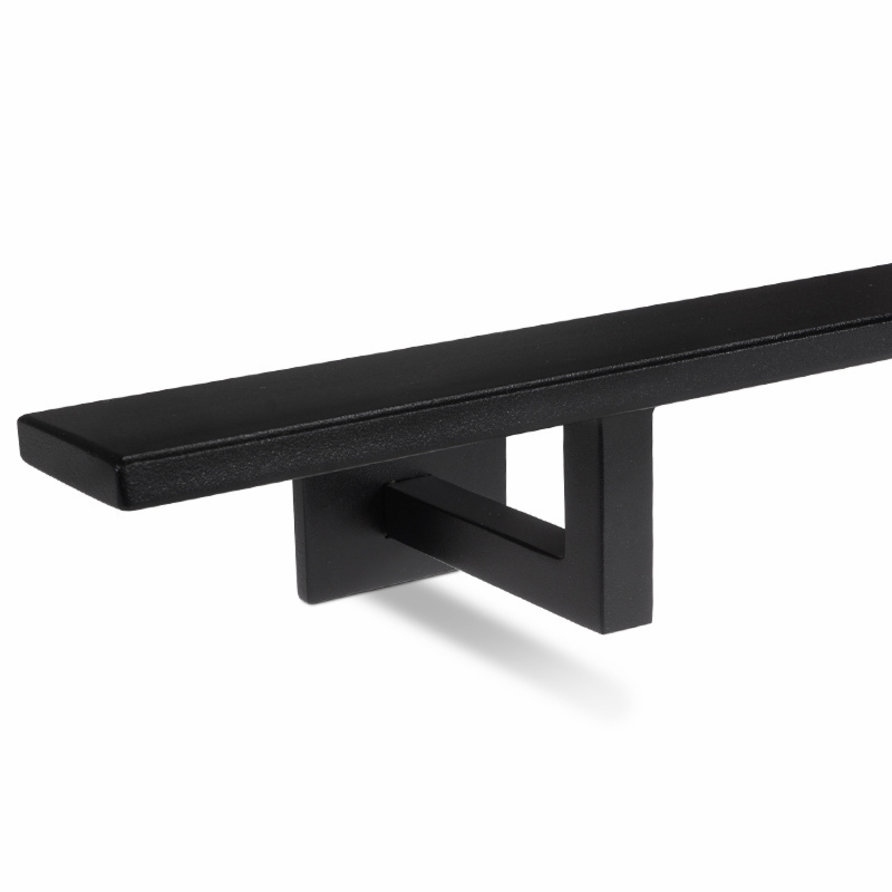 Zwarte trapleuning - speciaal geschikt voor buitengebruik - rechthoekig (40x10 mm) - incl. dragers TYPE 11 + bevestigingsmaterialen - OP MAAT - van 30 cm t/m 595 cm lang - fijnstructuur poedercoating in RAL 9005 zwart (voor buiten). Deze rechthoekige zwarte trapleuning van staal heeft een "dikte" van 40x10 mm en is voorzien van een hoogwaardige fijnstructuur poedercoating in de zwarte kleurtint RAL 9005 (gitzwart). Voor extra bescherming tegen de (weers)invloeden bij buiten plaatsing, is deze trapleuning 2 laags (dubbel) gecoat. Voor buitengebruik bieden wij bewust alleen onze fijnstructuur coating aan, aangezien deze sterker & minder kwetsbaar is t.o.v. een gladde coating. De zwarte 40x10 mm trapleuning oogt - naast strak - vooral ook slank & elegant. Een stijlvolle trapleuning zwart met stoer accent, ideaal geschikt voor een moderne en trendy interieurstijl. De uiteinden van deze buitenleuning worden altijd naadloos dichtgelast en vervolgens mooi afgeslepen, voor een strakke en mooi afgewerkte trapleuning die optimaal beschermd is voor buiten.