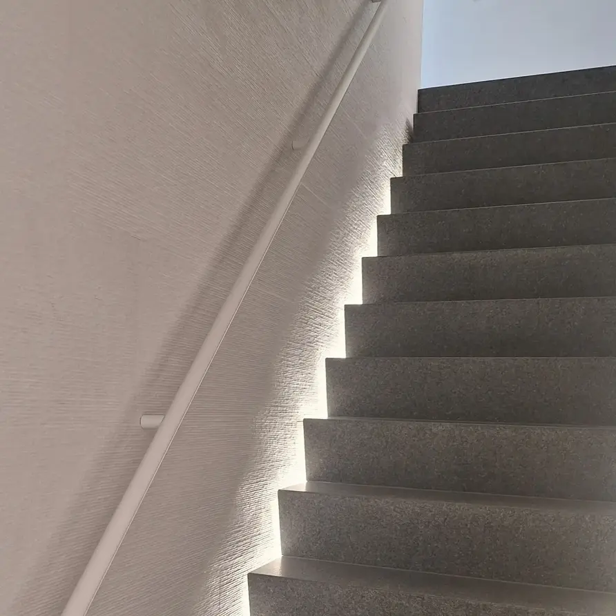 Een toegankelijke witte trapleuning met minimalistische type 14 leuningdragers. Deze ronde leuning past in vrijwel iedere interieurstijl en wordt - in een lengte op maat - compleet incl. dragers + bevestigingsmaterialen geleverd. Lees meer