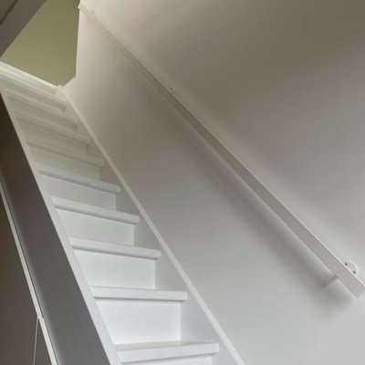 Een stijlvolle witte trapleuning met mooie type 4 leuningdragers. Deze rechthoekige leuning past mooi in een moderne & trendy interieurstijl en wordt - in een lengte op maat - compleet incl. dragers + bevestigingsmaterialen geleverd. Lees meer