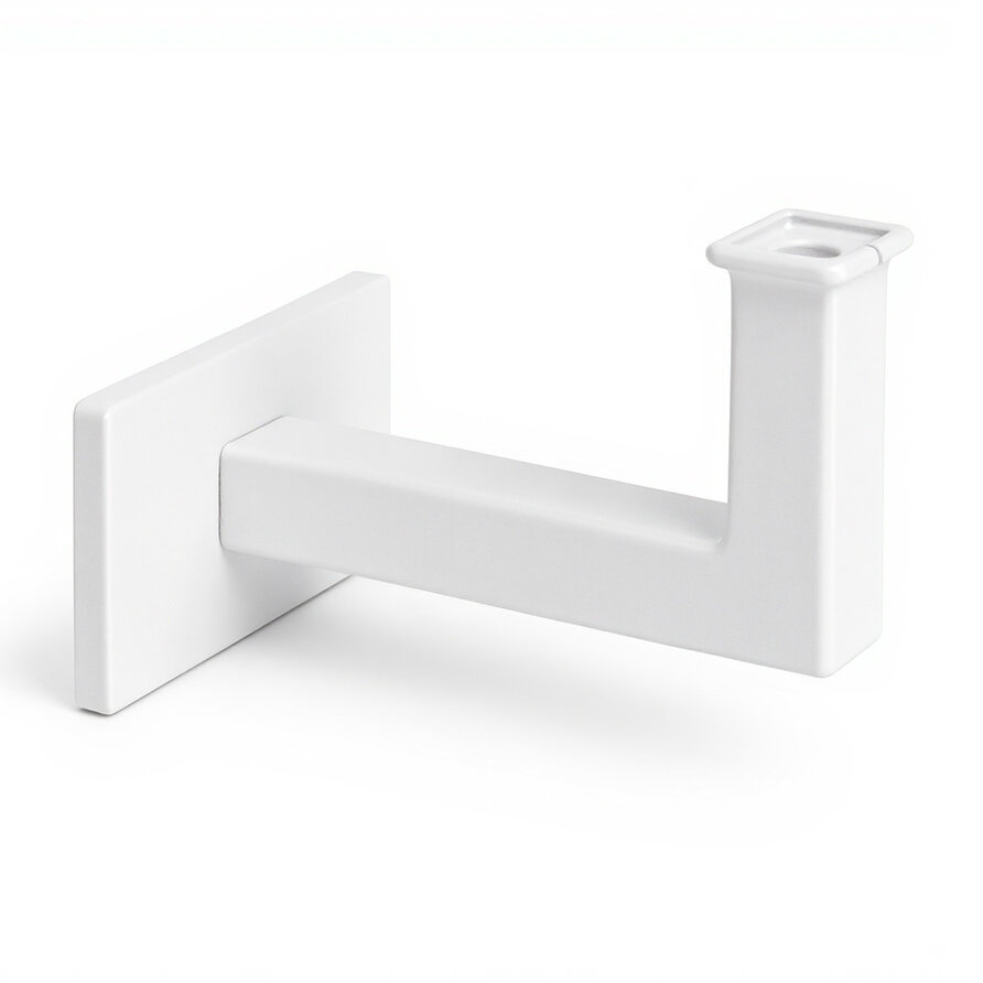 Een vierkante witte trapleuning met stijlvolle type 11 leuningdragers. Deze robuuste 40x40 mm leuning past mooi in een modern & industrieel interieur en wordt - in een lengte op maat - compleet incl. dragers + bevestigingsmaterialen geleverd. Lees meer