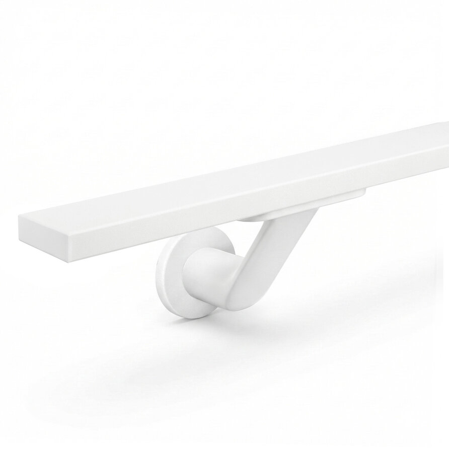 Witte trapleuning (gecoat) op maat - rechthoekig (40x10 mm) - incl. leuninghouders TYPE 7 LUXE - coating wit RAL 9016, 9010 of 9001