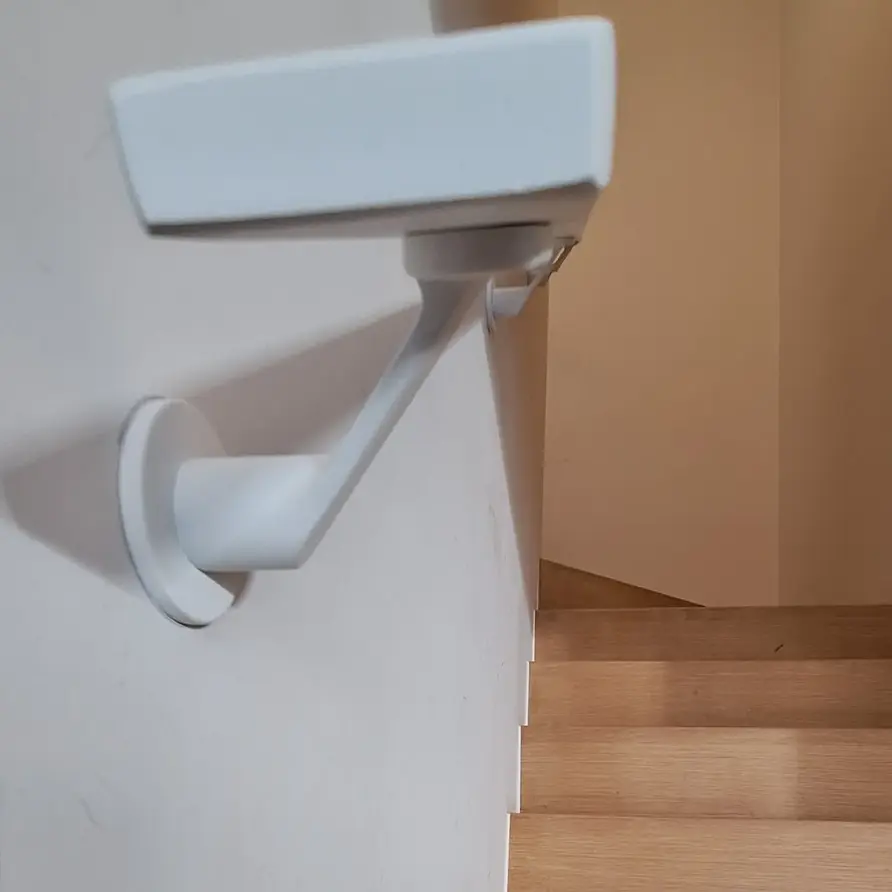 Bevestiging TYPE 7 LUXE aan de leuning: Met 2 schroeven. U ontvangt - per drager - 2 witte bolkop inbusschroeven m5.