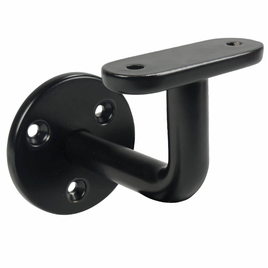 De zwarte leuningdrager TYPE 1 recht; Een toegankelijke houder, die - met het ronde bevestigingspunt en de 3 zichtbare bevestigingsschroeven - vrij klassiek oogt, met een stoere zwarte coating. Lees meer