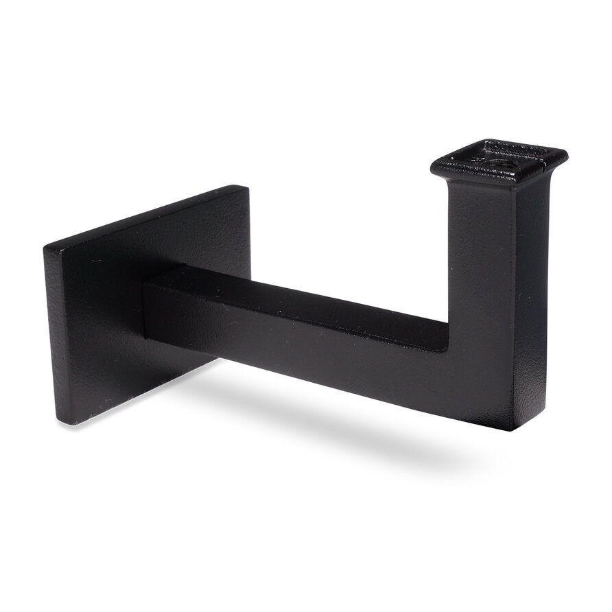 Zwarte leuninghouder - type 11 kort - recht - voor rechthoekige / vierkante trapleuningen - coating zwart RAL 9005