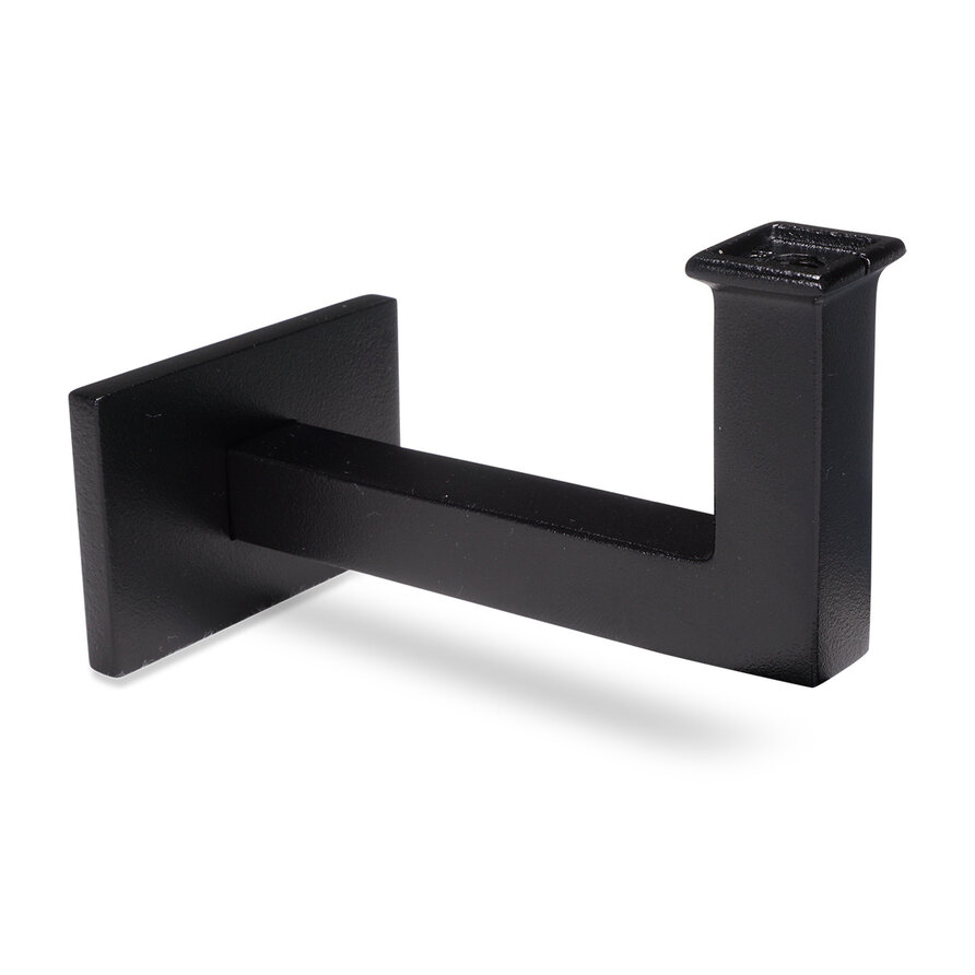 Zwarte leuninghouder - type 11 kort - recht - voor rechthoekige / vierkante trapleuningen - coating zwart RAL 9005 - voor buiten