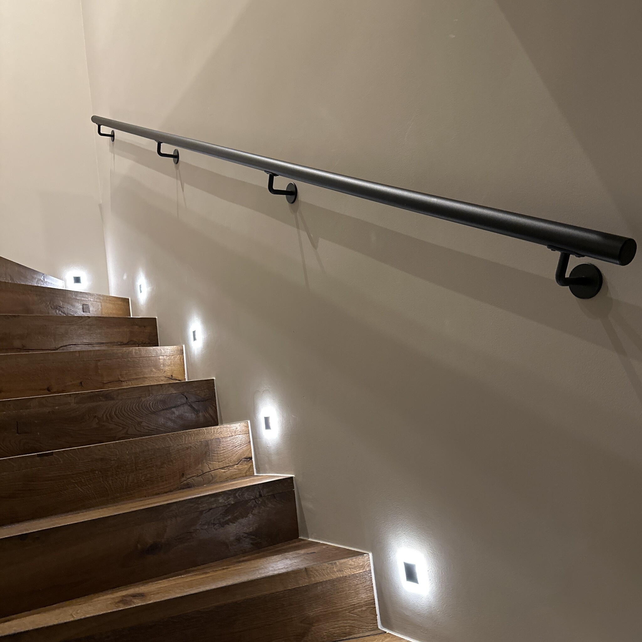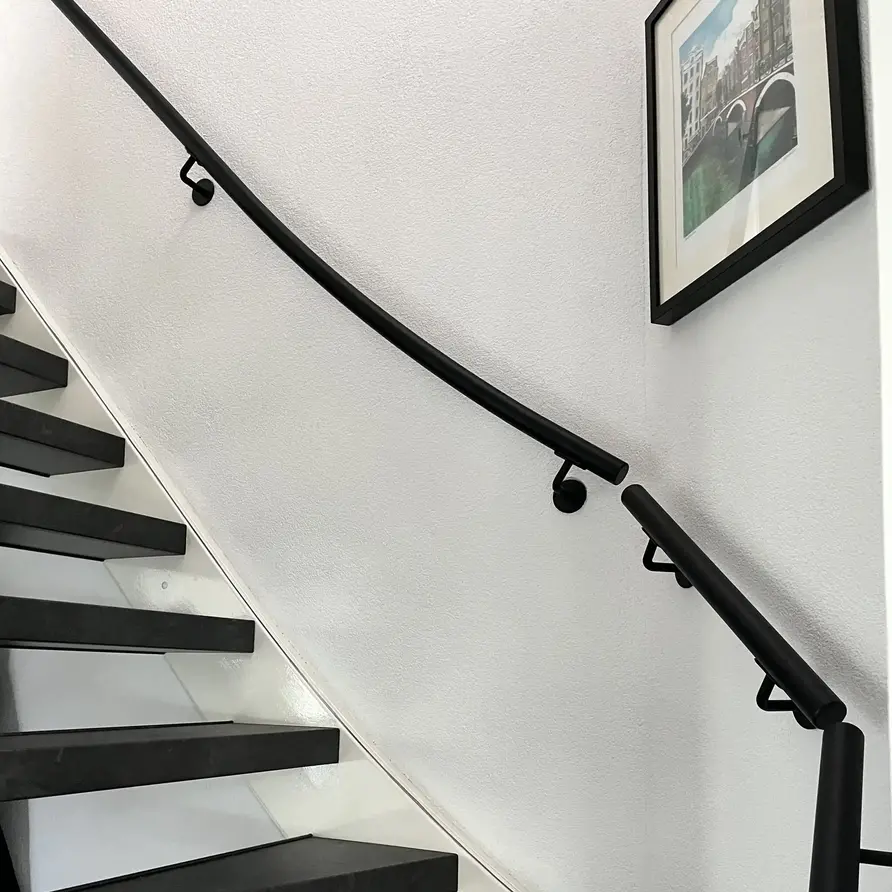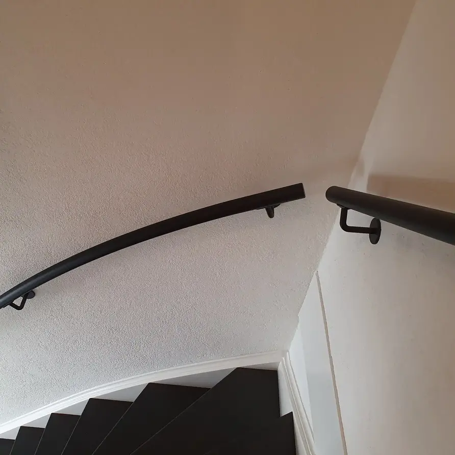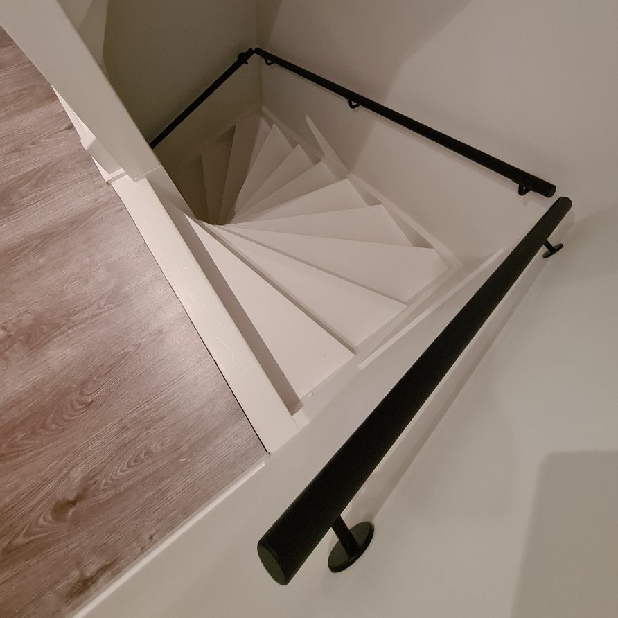 Zwarte trapleuning (gecoat) op maat - rond - incl. leuninghouders TYPE 3 - coating zwart RAL 9005