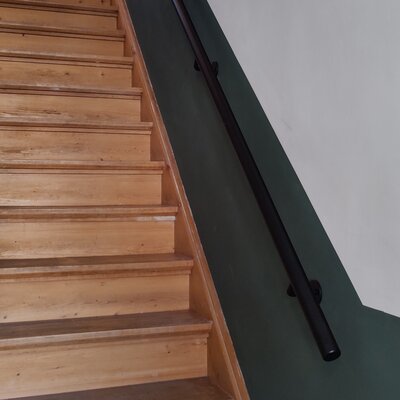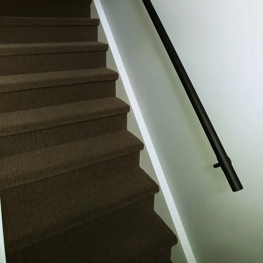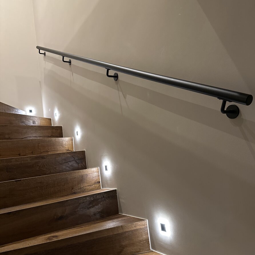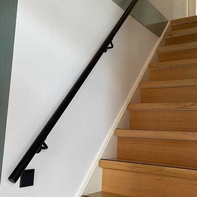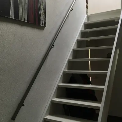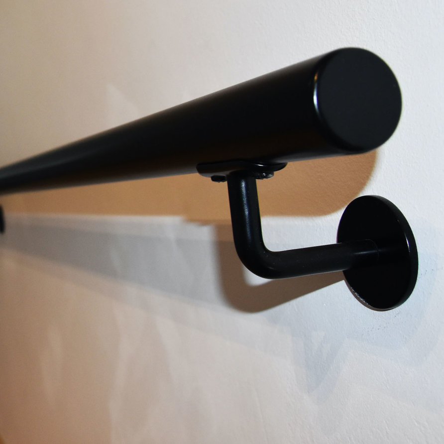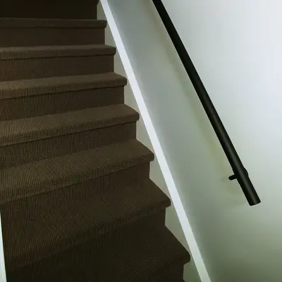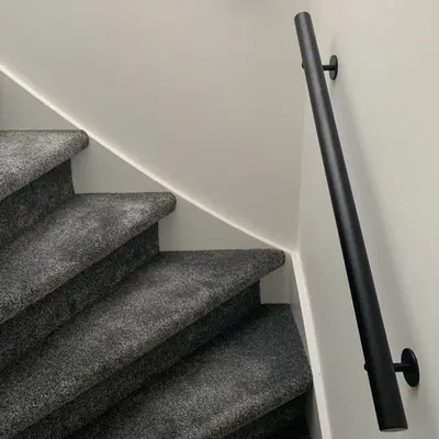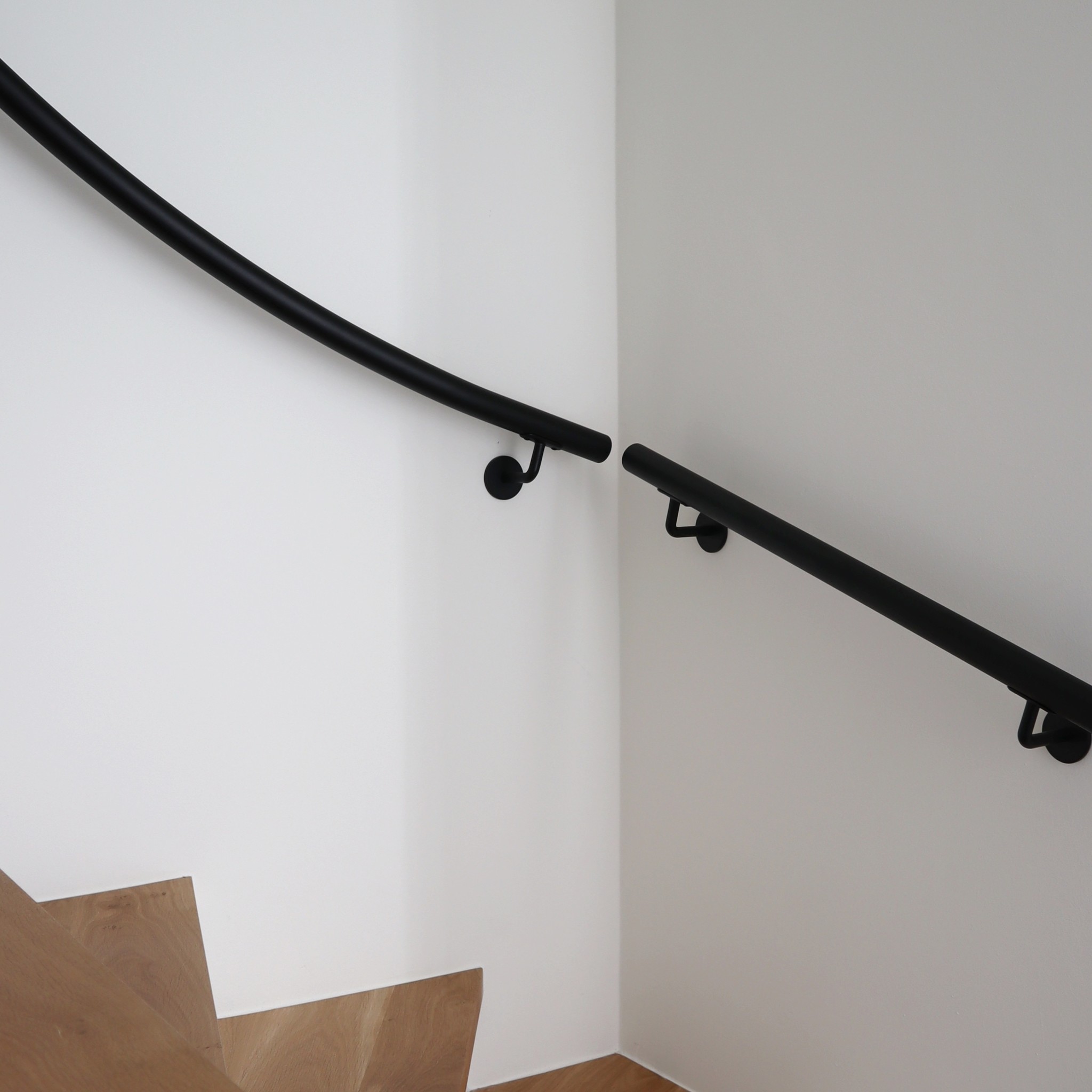 Een toegankelijke zwarte trapleuning met moderne type 3 leuningdragers. Deze ronde leuning past in vrijwel iedere interieurstijl en wordt - in een lengte op maat - compleet incl. dragers + bevestigingsmaterialen geleverd. Lees meer