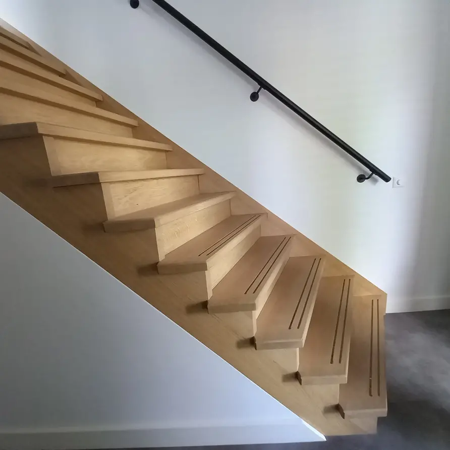 De TYPE 3 leuningdrager is een toegankelijke houder, die een klassieke vormgeving combineert met een moderne uitstraling. De "blinde montage" van deze drager (middels een stokbout) - waarbij er geen bevestigingsschroeven zichtbaar zijn - zorgt voor een extra strakke look. Deze trapleuning wordt in eigen werkplaats - tot op de mm nauwkeurig - voor u op maat vervaardigd. Uw leuning wordt in de gewenste lengte gezaagd, voorgeboord (t.b.v. houder TYPE 3) & zorgvuldig afgewerkt door ervaren vakmannen, met zorg & liefde voor het vak. U ontvangt deze leuning incl. dragers TYPE 3 plus alle bijbehorende bevestigingsmaterialen.