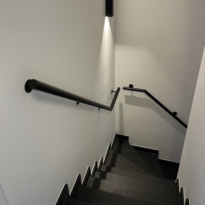 Zwarte trapleuning (gecoat) op maat - rond - incl. leuninghouders TYPE 4 - coating zwart RAL 9005