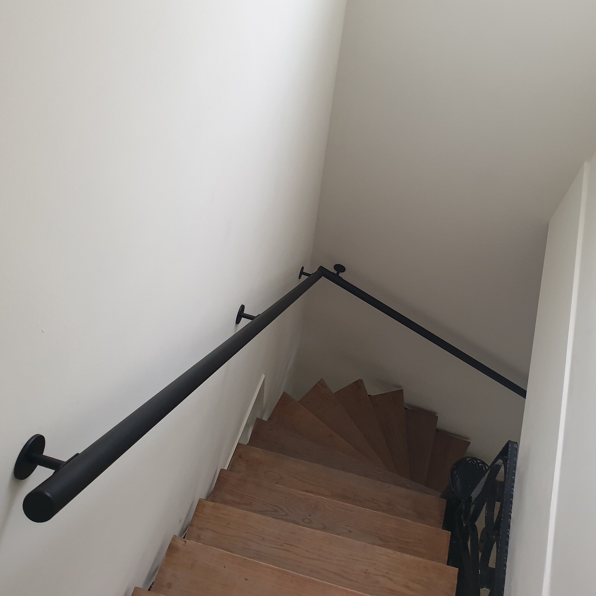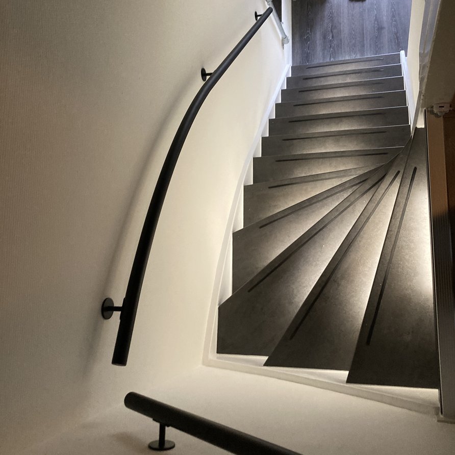 Zwarte trapleuning (gecoat) op maat - rond - incl. leuninghouders TYPE 5 - coating zwart RAL 9005
